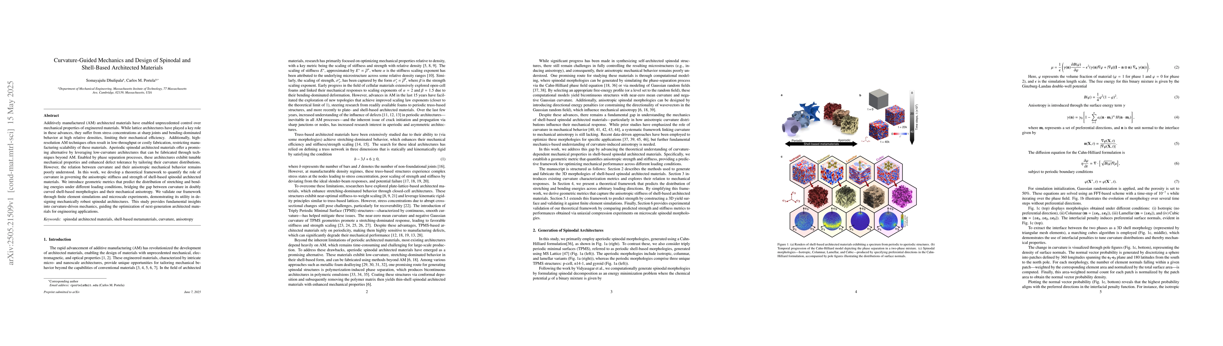 The research develops a theoretical framework using geometric metrics to quantify the role of curvature in governing the anisotropic stiffness and strength of shell-based spinodal architected materials, validated through finite element simulations and microscale experiments.