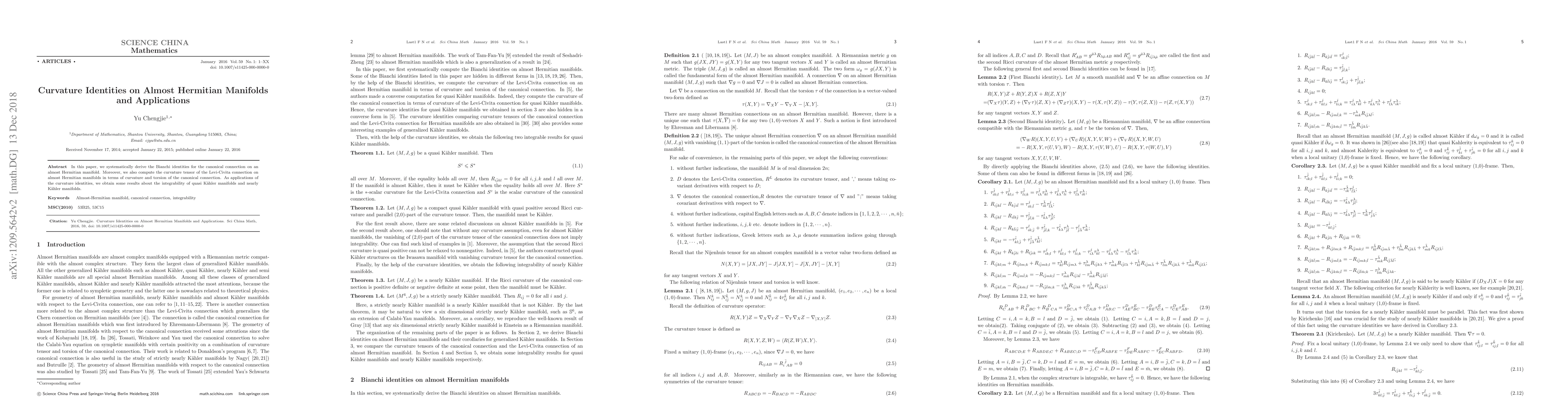 This paper computes Bianchi and curvature identities for almost Hermitian manifolds, establishing a connection between the Levi-Civita connection and the canonical connection's curvature and torsion. It applies these results to explore the integrability of quasi Kähler and properties of nearly Kähler manifolds.