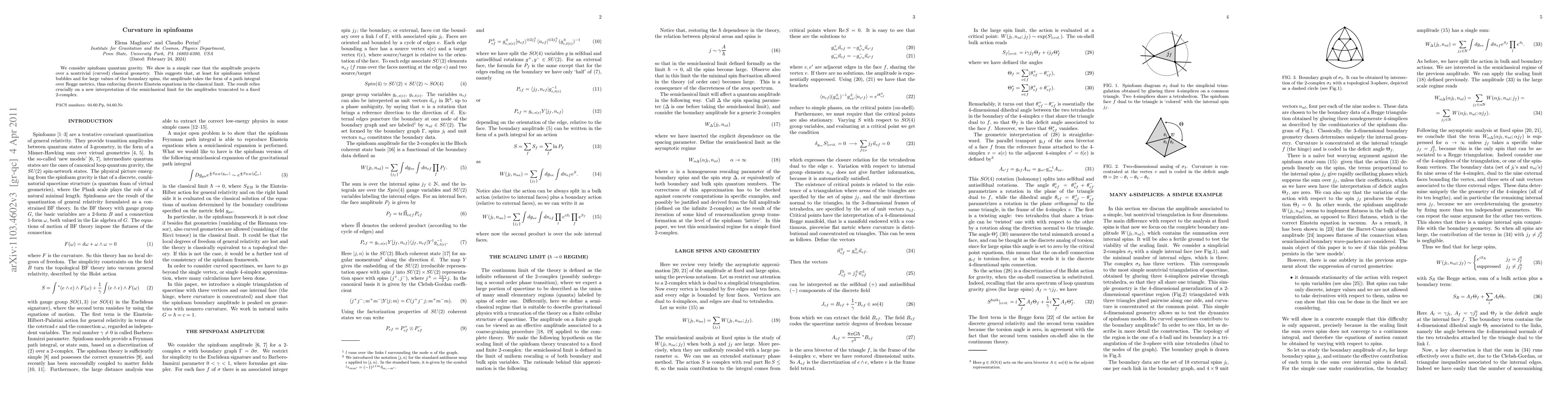 Research shows that spinfoam quantum gravity can project onto a curved classical geometry, suggesting a path integral over Regge metrics, which enforces discrete Einstein equations in the classical limit.
