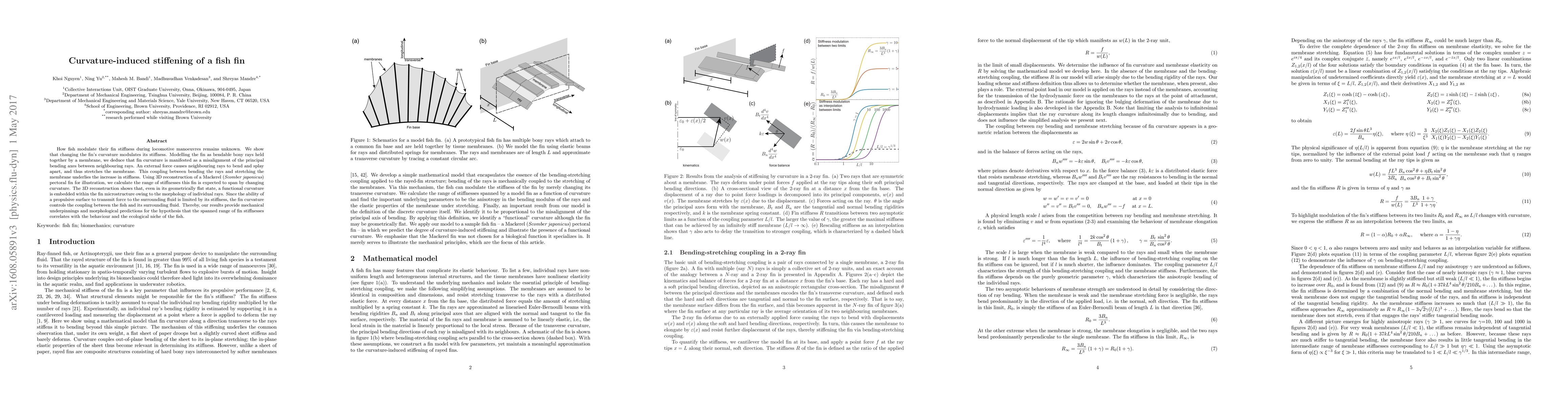 Fish fins can become stiffer when curved, allowing them to transmit more force to water during swimming, according to a study that modeled the fin's structure and behavior.