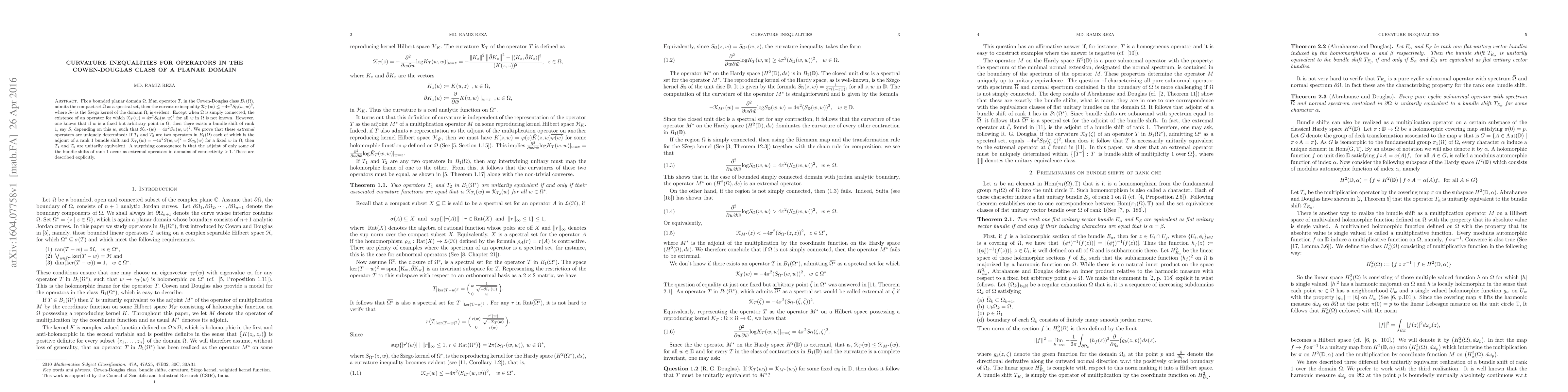 Researchers prove that in planar domains, operators with a specific curvature inequality are uniquely determined and can be unitarily equivalent to their adjoints, shedding light on the properties of bundle shifts in Cowen-Douglas class operators.