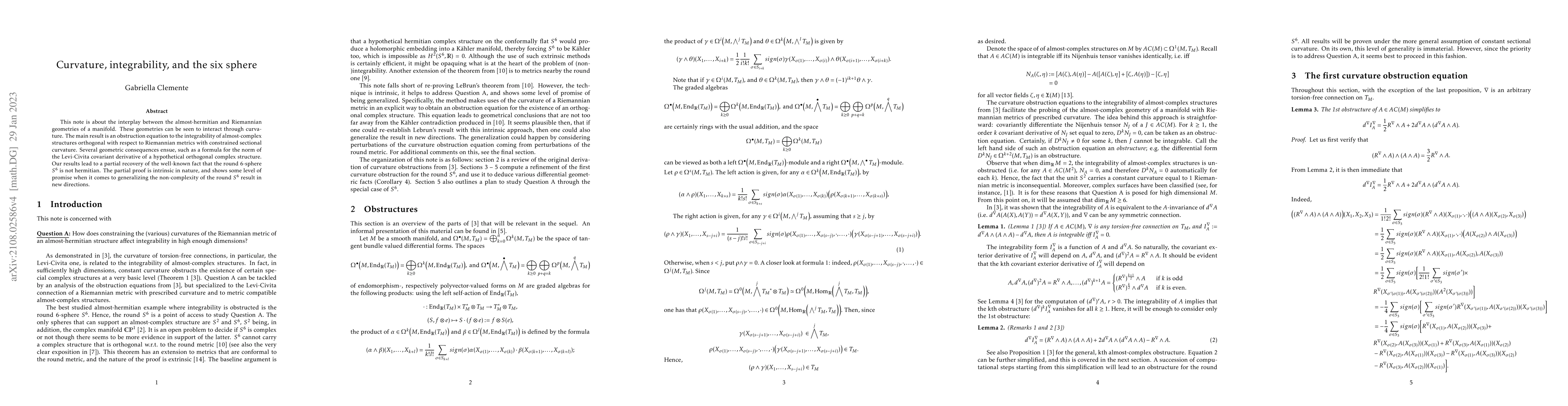 This paper explores the interaction between almost-Hermitian and Riemannian geometries through curvature, presenting an obstruction equation for the integrability of certain almost-complex structures. It provides a partial intrinsic proof of the non-existence of Hermitian structures on the round 6-sphere $S^6$.