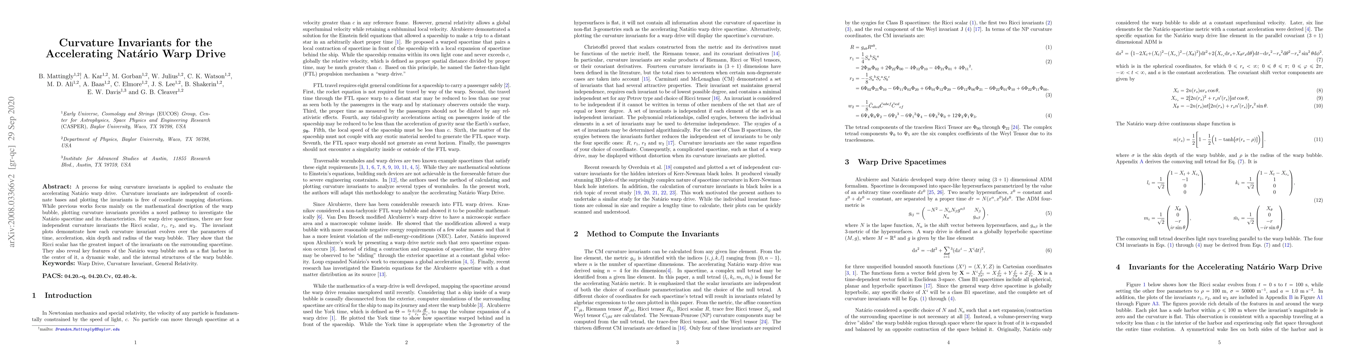 A process for using curvature invariants is applied to evaluate the accelerating Natario warp drive. Curvature invariants are independent of coordinate bases and plotting the invariants is free of coordinate mapping distortions. While previous works focus mainly on the mathematical description of the warp bubble, plotting curvature invariants provides a novel pathway to investigate the Nat\'ario spacetime and its characteristics. For warp drive spacetimes, there are four independent curvature invariants the Ricci scalar, r_1, r_2, and w_2. The invariant plots demonstrate how each curvature invariant evolves over the parameters of time, acceleration, skin depth and radius of the warp bubble. They show that the Ricci scalar has the greatest impact of the invariants on the surrounding spacetime. They also reveal key features of the Natario warp bubble such as a flat harbor in the center of it, a dynamic wake, and the internal structures of the warp bubble.