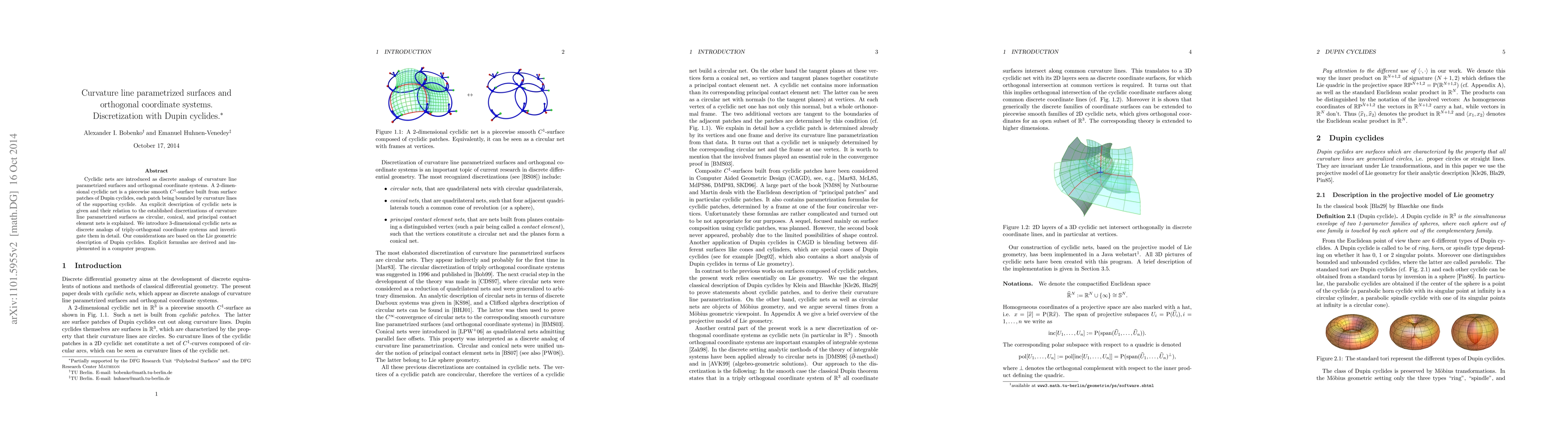 This paper introduces cyclidic nets as discrete analogs of curvature line parametrized surfaces and orthogonal coordinate systems, built from Dupin cyclides. It provides explicit descriptions and relations to existing discretizations, and explores 3-dimensional cyclidic nets based on Lie geometric theory, with formulas implemented in a computer program.