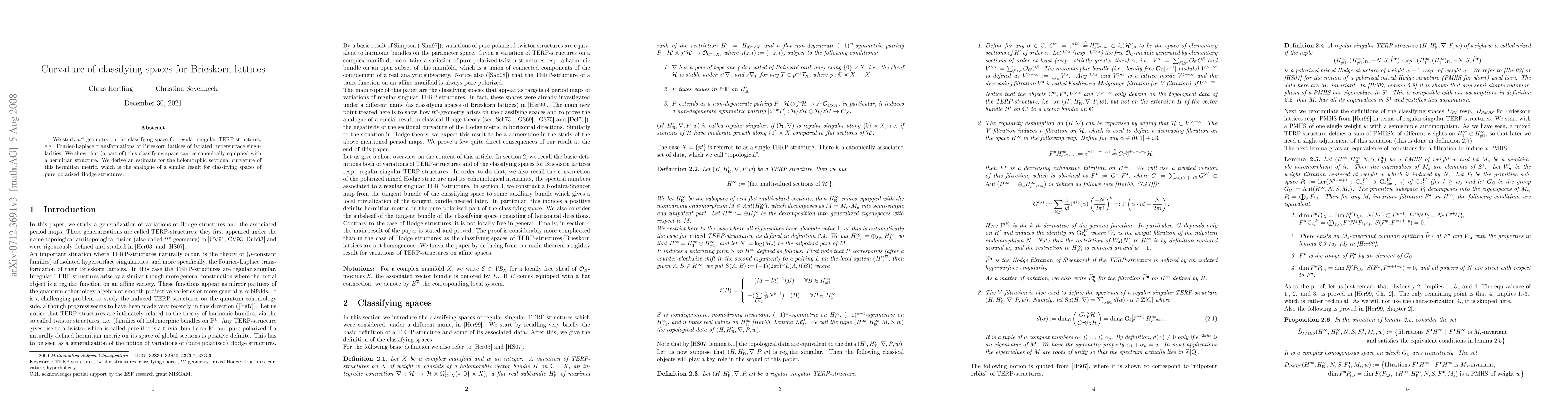 This paper explores tt*-geometry on classifying spaces for regular singular TERP-structures, specifically Fourier-Laplace transformations of Brieskorn lattices. It demonstrates a canonical hermitian structure on a part of this classifying space and provides an estimate for its holomorphic sectional curvature.