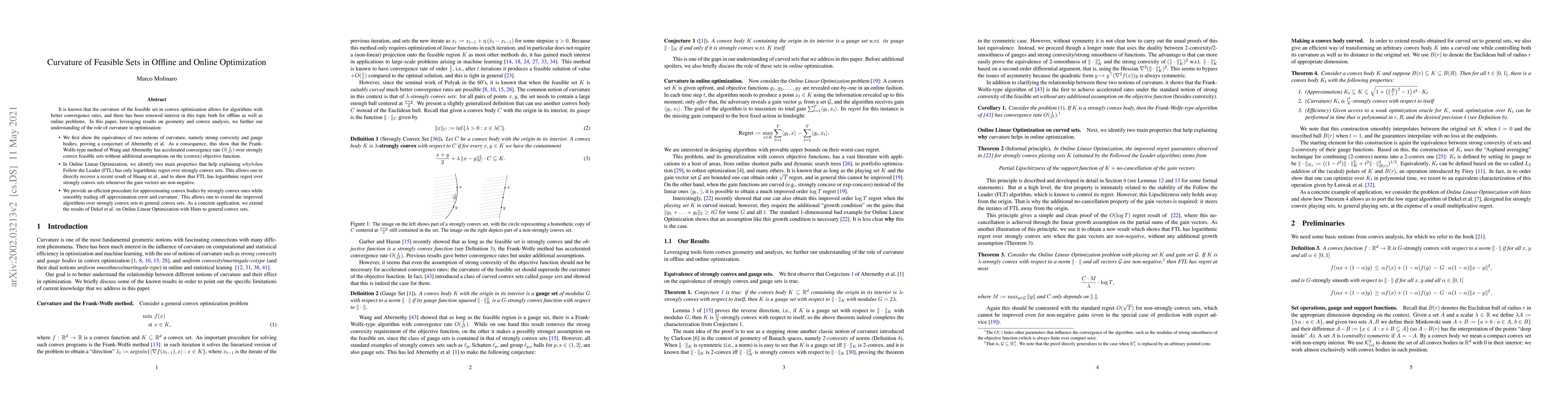 This paper explores the impact of curvature on both offline and online optimization, demonstrating the equivalence of strong convexity and gauge bodies. It shows accelerated convergence for Frank-Wolfe methods on strongly convex sets and explains logarithmic regret in online optimization due to curvature properties. Additionally, it presents a method to approximate convex bodies by strongly convex ones, extending improved algorithms to general convex sets.
