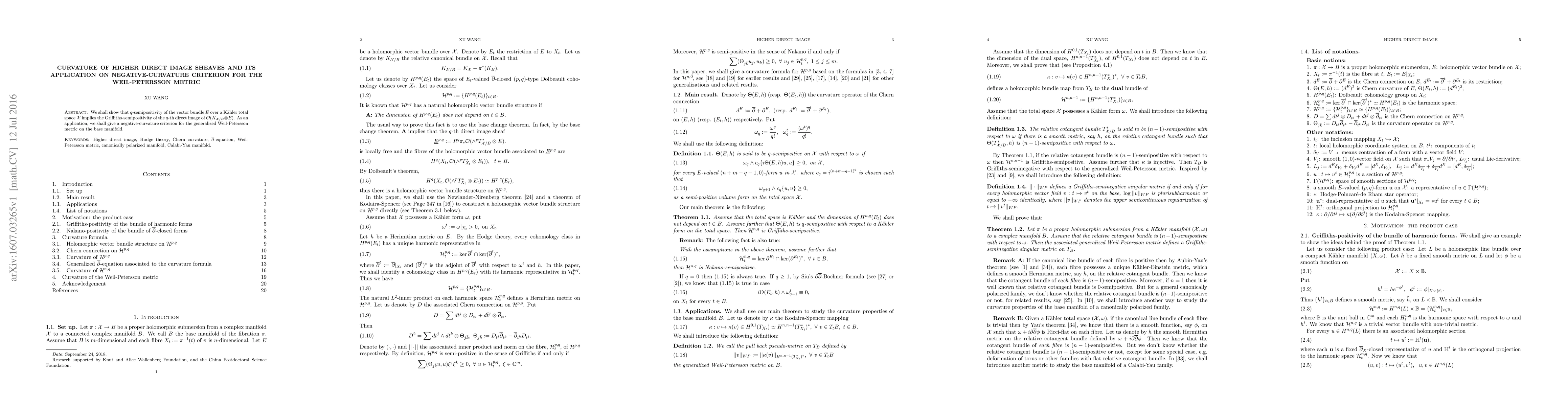 Summary: This paper proves that $q$-semipositivity of a vector bundle $E$ over a Kähler space implies Griffiths-semipositivity of its $q$-th direct image sheaf. It applies this result to establish a criterion for negative curvature of the generalized Weil-Petersson metric on the base manifold.