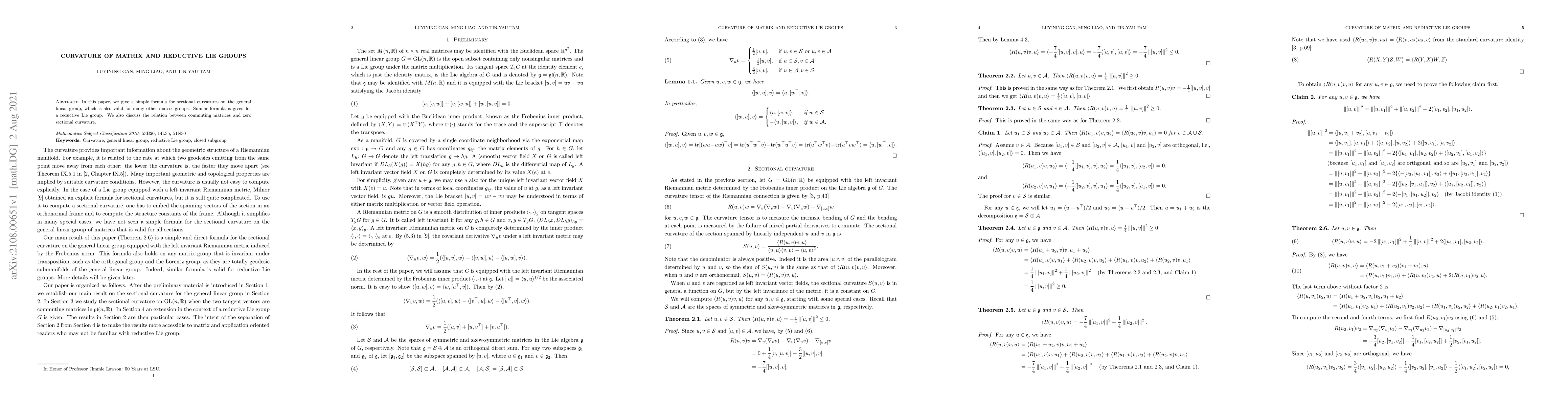 Researchers developed formulas for sectional curvatures on matrix groups and reductive Lie groups, offering insights into their curvature properties.