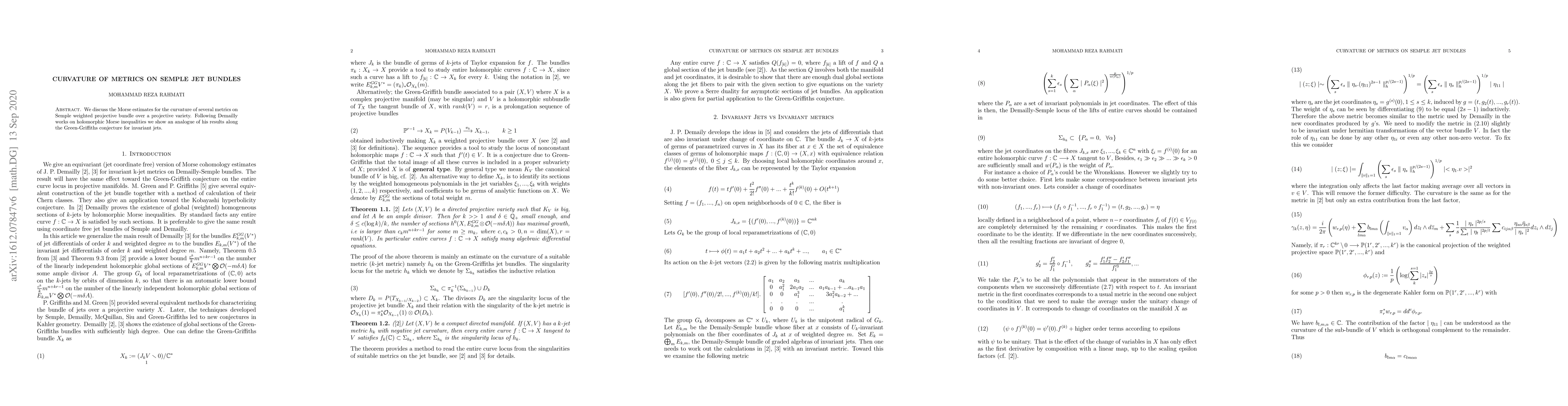 This paper explores metrics on Semple jet bundles using Morse estimates, building on Demailly's work to address the Green-Griffiths conjecture for invariant jets.