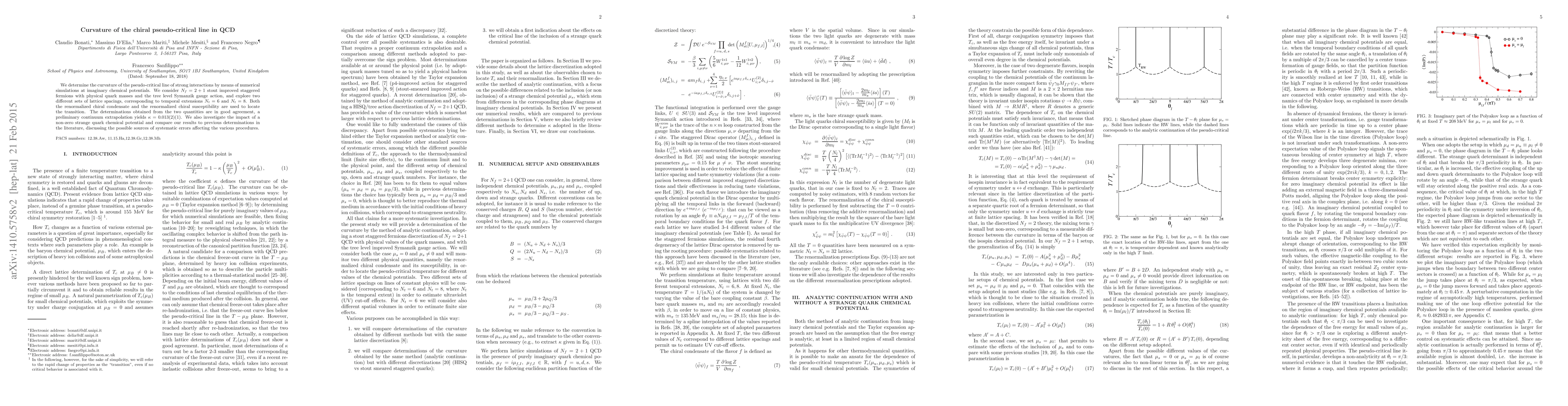 We determine the curvature of the pseudo-critical line of strong interactions by means of numerical simulations at imaginary chemical potentials. We consider $N_f=2+1$ stout improved staggered fermions with physical quark masses and the tree level Symanzik gauge action, and explore two different sets of lattice spacings, corresponding to temporal extensions $N_t = 6$ and $N_t = 8$. Both the renormalized chiral condensate and the renormalized chiral susceptibility are used to locate the transition. The determinations obtained from the two quantities are in good agreement, a preliminary continuum extrapolation yields $\kappa = 0.013(2)(1)$. We also investigate the impact of a non-zero strange quark chemical potential and compare our results to previous determinations in the literature, discussing the possible sources of systematic errors affecting the various procedures.