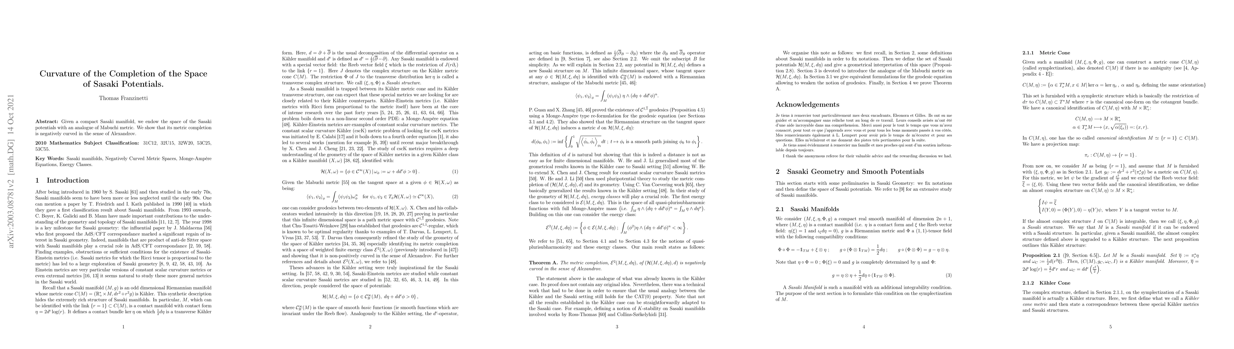 Given a compact Sasaki manifold, we endow the space of the Sasaki potentials with an analogue of Mabuchi metric. We show that its metric completion is negatively curved in the sense of Alexandrov.