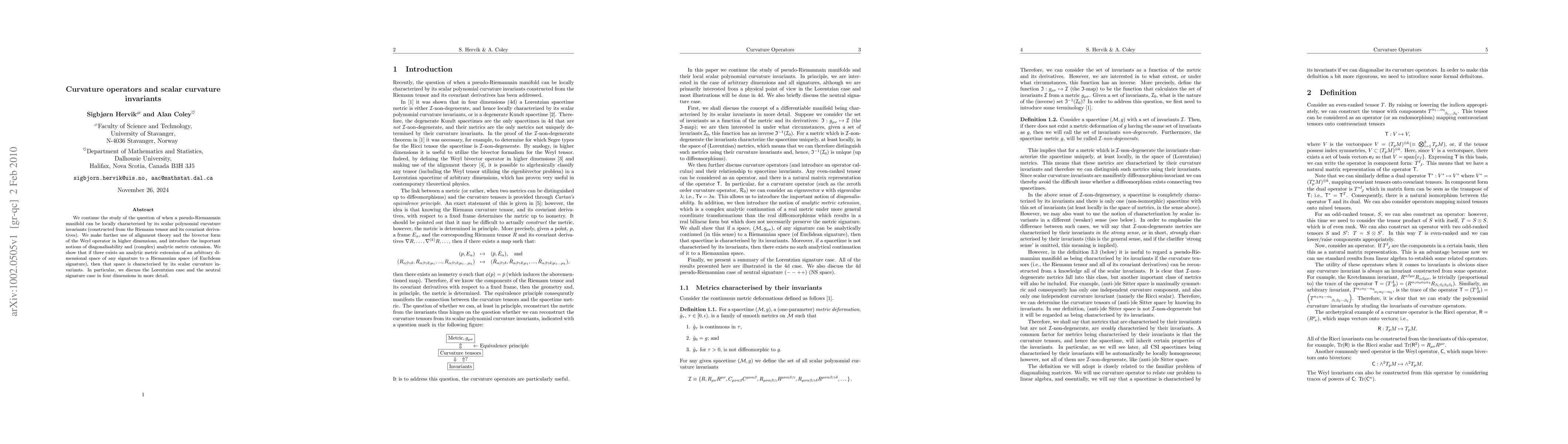 We continue the study of the question of when a pseudo-Riemannain manifold can be locally characterised by its scalar polynomial curvature invariants (constructed from the Riemann tensor and its covariant derivatives). We make further use of alignment theory and the bivector form of the Weyl operator in higher dimensions, and introduce the important notions of diagonalisability and (complex) analytic metric extension. We show that if there exists an analytic metric extension of an arbitrary dimensional space of any signature to a Riemannian space (of Euclidean signature), then that space is characterised by its scalar curvature invariants. In particular, we discuss the Lorentzian case and the neutral signature case in four dimensions in more detail.
