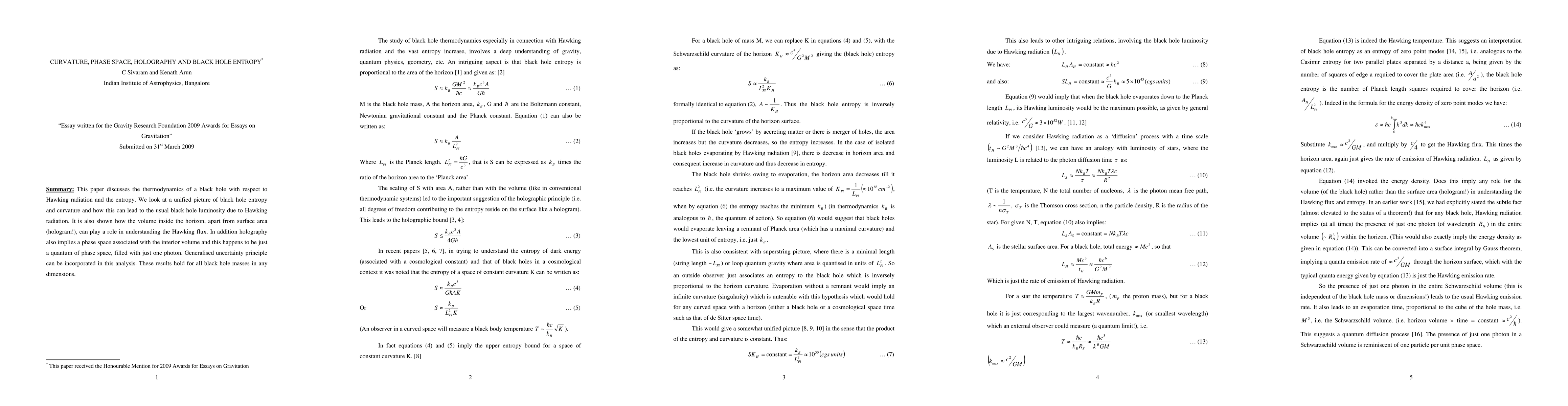 This paper explores the thermodynamics of black holes, linking entropy, curvature, and Hawking radiation, and demonstrates how the volume inside the horizon contributes to the Hawking flux. It also introduces a holographic phase space and a generalised uncertainty principle, showing these concepts apply universally across all black hole masses and dimensions.