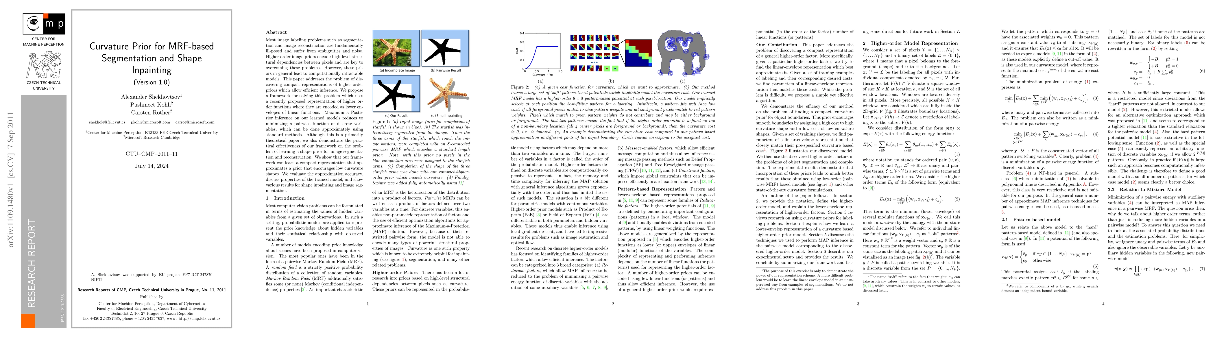 Most image labeling problems such as segmentation and image reconstruction are fundamentally ill-posed and suffer from ambiguities and noise. Higher order image priors encode high level structural dependencies between pixels and are key to overcoming these problems. However, these priors in general lead to computationally intractable models. This paper addresses the problem of discovering compact representations of higher order priors which allow efficient inference. We propose a framework for solving this problem which uses a recently proposed representation of higher order functions where they are encoded as lower envelopes of linear functions. Maximum a Posterior inference on our learned models reduces to minimizing a pairwise function of discrete variables, which can be done approximately using standard methods. Although this is a primarily theoretical paper, we also demonstrate the practical effectiveness of our framework on the problem of learning a shape prior for image segmentation and reconstruction. We show that our framework can learn a compact representation that approximates a prior that encourages low curvature shapes. We evaluate the approximation accuracy, discuss properties of the trained model, and show various results for shape inpainting and image segmentation.