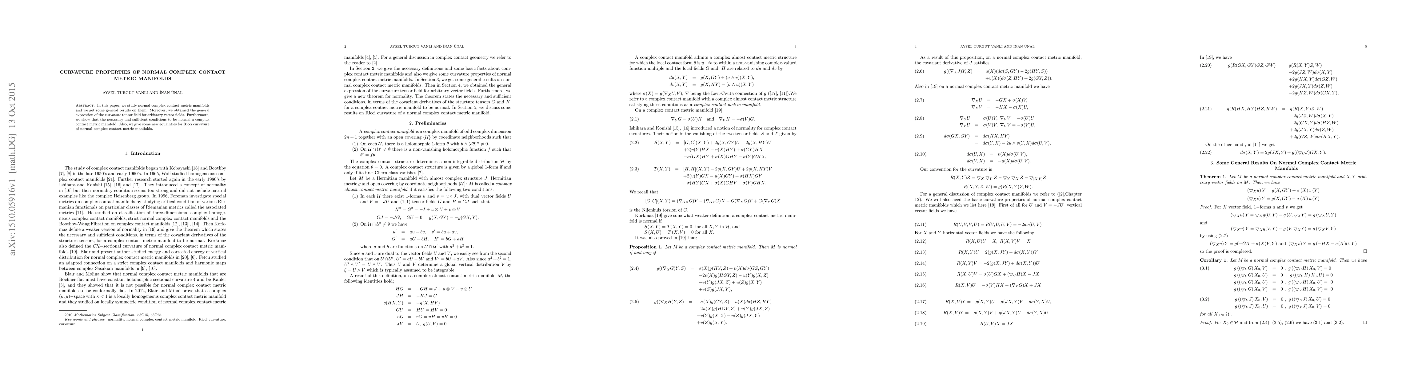This paper investigates normal complex contact metric manifolds, deriving the general expression for their curvature tensor and establishing necessary and sufficient conditions for normality. It also presents new equations related to the Ricci curvature of these manifolds.