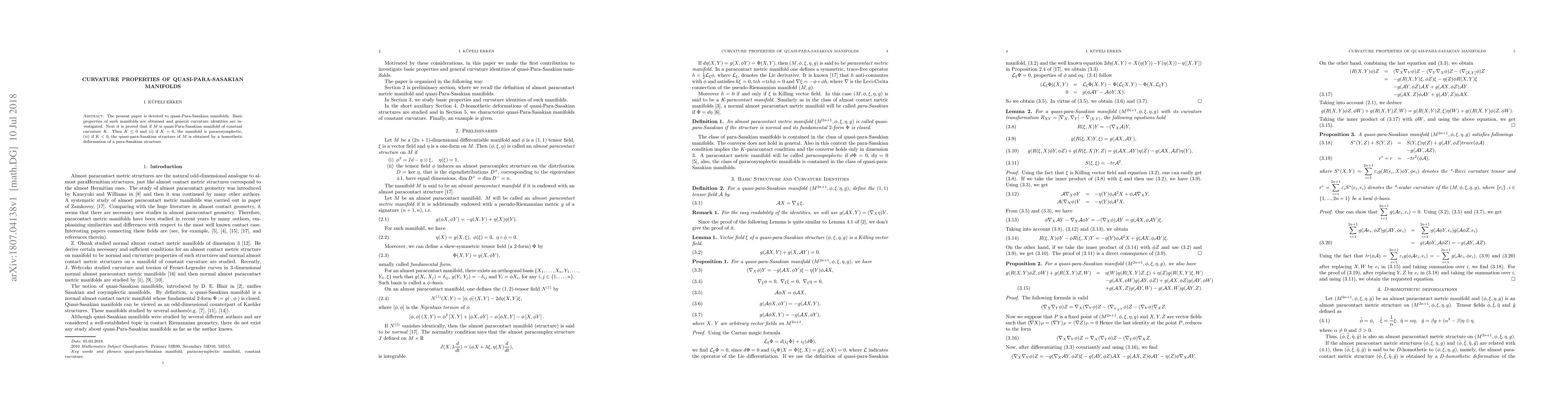This paper explores the basic properties and curvature identities of quasi-Para-Sasakian manifolds, proving that their constant curvature $K$ must be non-positive; specifically, $K=0$ implies paracosymplectic nature, while $K<0$ results from a homothetic deformation of a para-Sasakian structure.