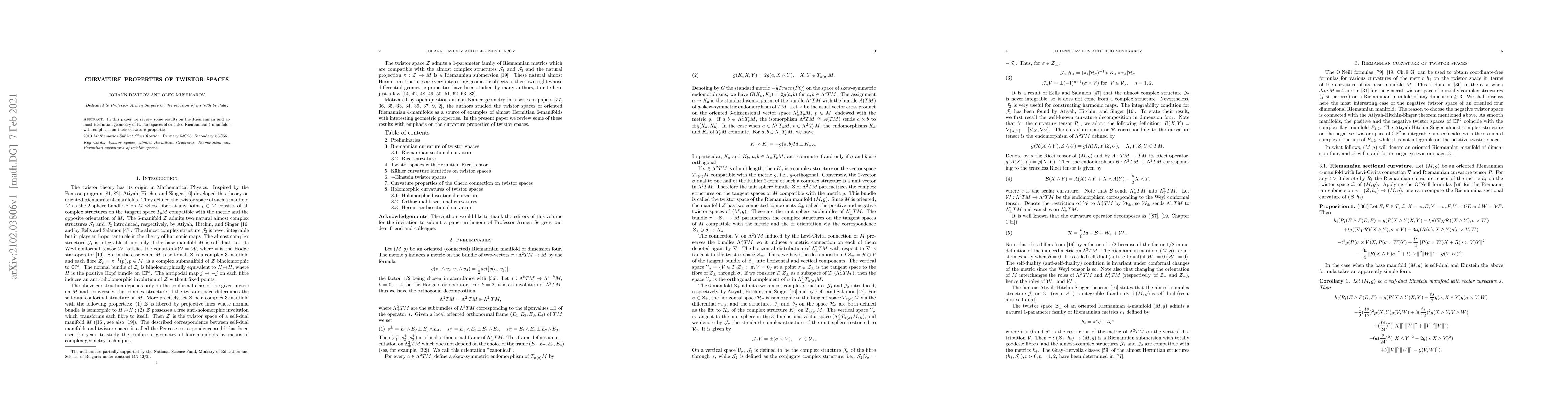 Summary: This paper reviews Riemannian and almost Hermitian geometric properties of twistor spaces in oriented Riemannian 4-manifolds, focusing on their curvature characteristics. The study highlights the implications of these geometric properties for understanding the underlying manifold structure.