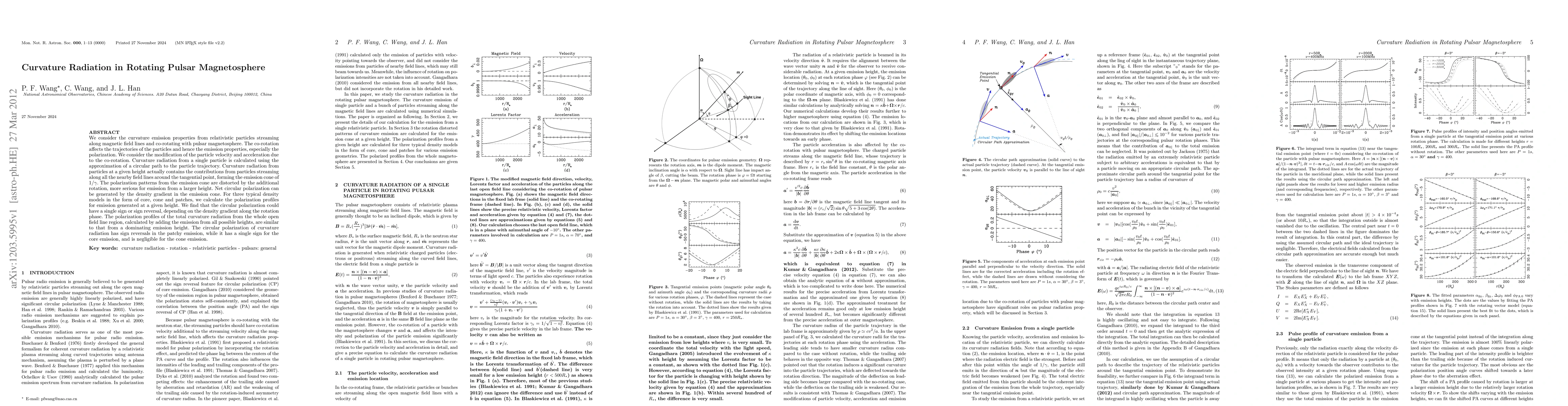Understanding curvature radiation in rotating pulsars is crucial for interpreting polarization observations and understanding magnetospheric dynamics