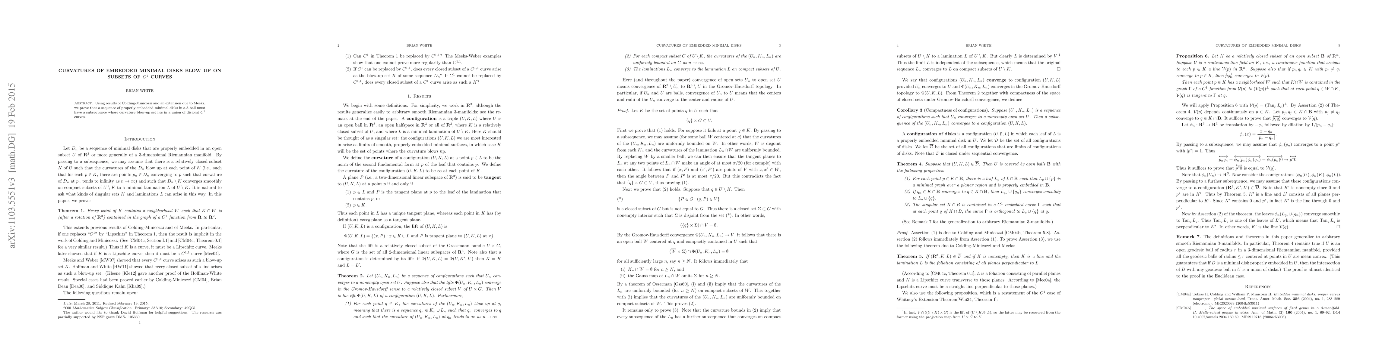 This paper demonstrates that sequences of properly embedded minimal disks in an open subset of Euclidean 3-space exhibit curvature blow-up on a relatively closed subset K, which is shown to be contained within a C^1 embedded curve. The result relies on prior work by Colding-Minicozzi and extensions by Meeks.