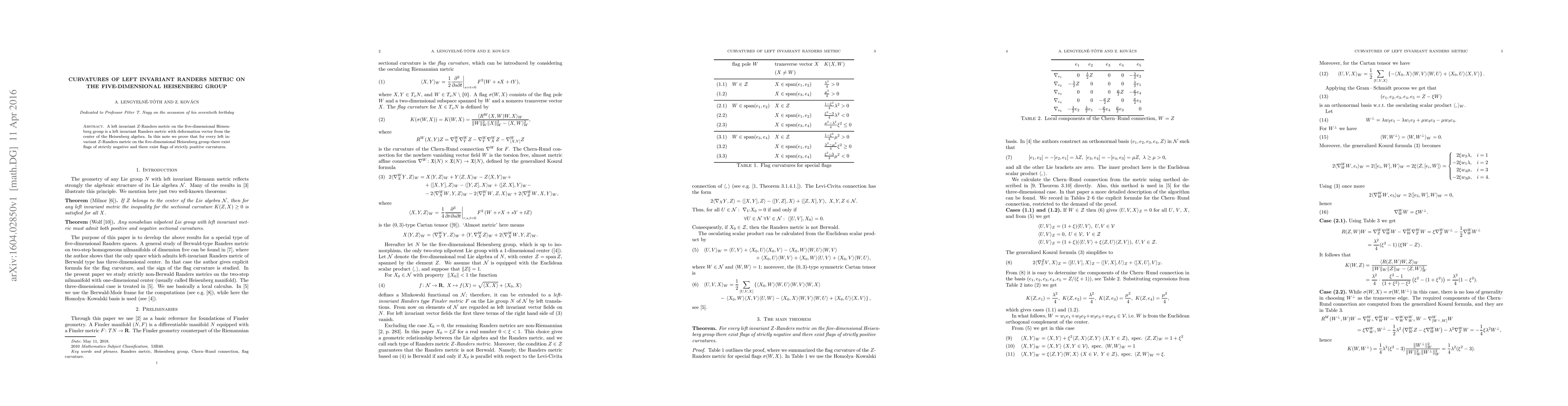 A left invariant Z-Randers metric on the five-dimensional Heisenberg group is a left invariant Randers metric with deformation vector from the center of the Heisenberg algebra. In this note we prove that for every left invariant Z-Randers metric on the five-dimensional Heisenberg group there exist flags of strictly negative and there exist flags of strictly positive curvatures.
