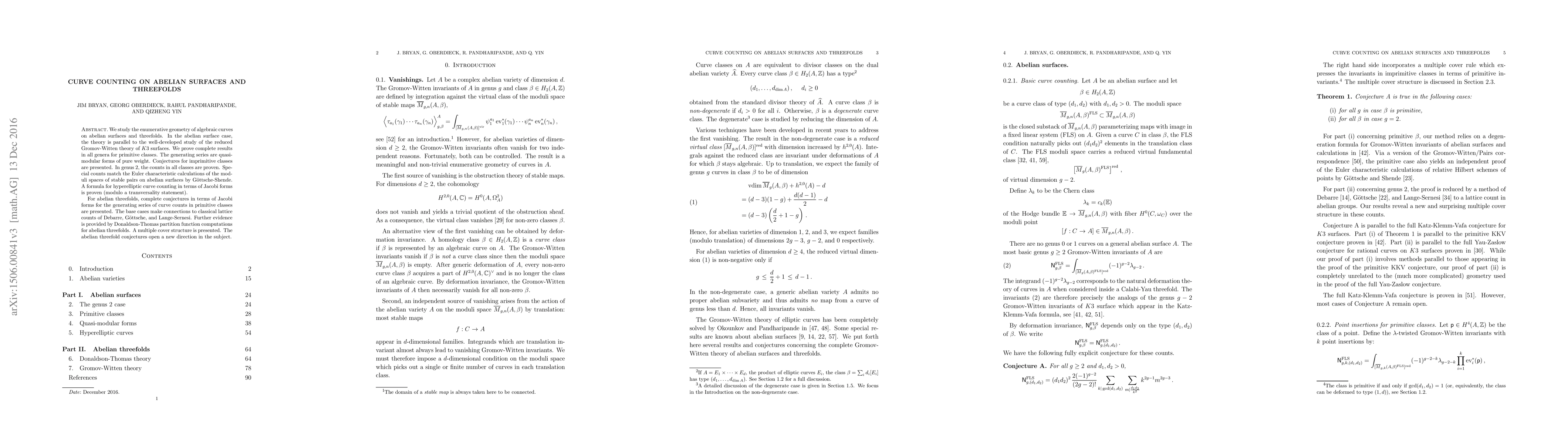 We study the enumerative geometry of algebraic curves on abelian surfaces and threefolds. In the abelian surface case, the theory is parallel to the well-developed study of the reduced Gromov-Witten theory of K3 surfaces. We prove complete results in all genera for primitive classes. The generating series are quasimodular forms of pure weight. Conjectures for imprimitive classes are presented. In genus 2, the counts in all classes are proven. Special counts match the Euler characteristic calculations of the moduli spaces of stable pairs on abelian surfaces by G\"ottsche-Shende. A formula for hyperelliptic curve counting in terms of Jacobi forms is proven (modulo a transversality statement). For abelian threefolds, complete conjectures in terms of Jacobi forms for the generating series of curve counts in primitive classes are presented. The base cases make connections to classical lattice counts of Debarre, Goettsche, and Lange-Sernesi. Further evidence is provided by Donaldson-Thomas partition function computations for abelian threefolds. A multiple cover structure is presented. The abelian threefold conjectures open a new direction in the subject.