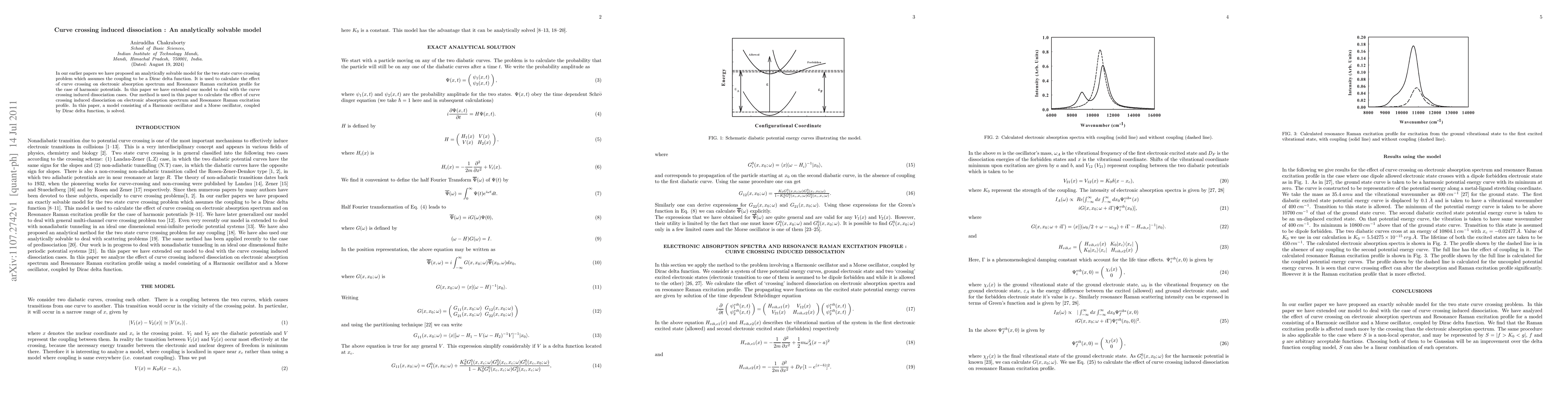 This paper extends an analytically solvable model for curve crossing in two-state systems, originally applied to harmonic potentials, to include cases of curve crossing induced dissociation. The model, coupling a harmonic oscillator and a Morse oscillator via a Dirac delta function, is used to calculate the impact on electronic absorption spectrum and Resonance Raman excitation profile.