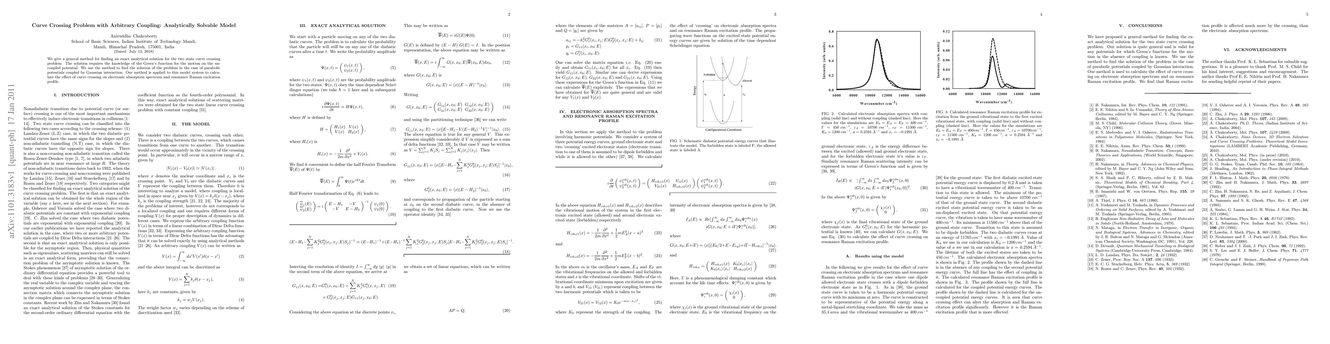 This paper presents a general method for solving the two-state curve crossing problem analytically, utilizing the Green's function for uncoupled potentials. It applies this method to parabolic potentials coupled by Gaussian interaction to analyze the impact on electronic absorption spectrum and resonance Raman excitation profile.