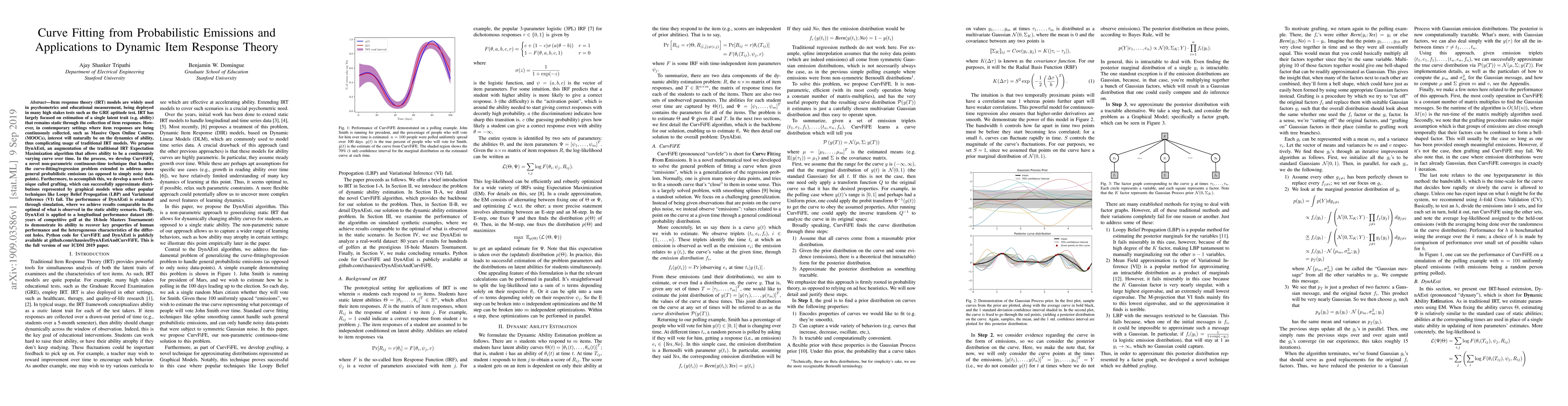 Item response theory (IRT) models are widely used in psychometrics and educational measurement, being deployed in many high stakes tests such as the GRE aptitude test. IRT has largely focused on estimation of a single latent trait (e.g. ability) that remains static through the collection of item responses. However, in contemporary settings where item responses are being continuously collected, such as Massive Open Online Courses (MOOCs), interest will naturally be on the dynamics of ability, thus complicating usage of traditional IRT models. We propose DynAEsti, an augmentation of the traditional IRT Expectation Maximization algorithm that allows ability to be a continuously varying curve over time. In the process, we develop CurvFiFE, a novel non-parametric continuous-time technique that handles the curve-fitting/regression problem extended to address more general probabilistic emissions (as opposed to simply noisy data points). Furthermore, to accomplish this, we develop a novel technique called grafting, which can successfully approximate distributions represented by graphical models when other popular techniques like Loopy Belief Propogation (LBP) and Variational Inference (VI) fail. The performance of DynAEsti is evaluated through simulation, where we achieve results comparable to the optimal of what is observed in the static ability scenario. Finally, DynAEsti is applied to a longitudinal performance dataset (80-years of competitive golf at the 18-hole Masters Tournament) to demonstrate its ability to recover key properties of human performance and the heterogeneous characteristics of the different holes. Python code for CurvFiFE and DynAEsti is publicly available at github.com/chausies/DynAEstiAndCurvFiFE. This is the full version of our ICDM 2019 paper.