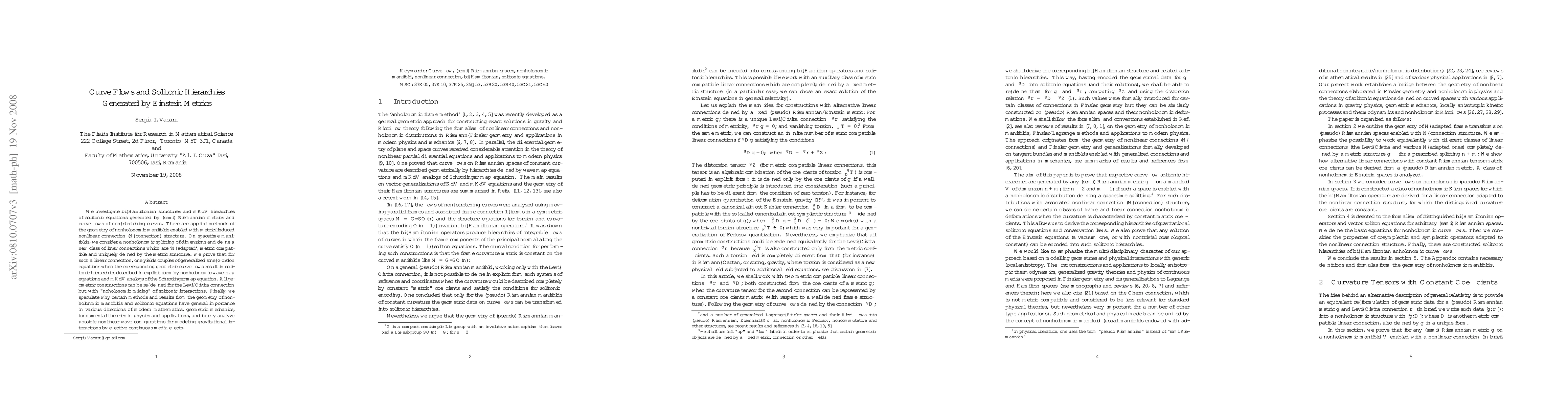 This paper explores bi-Hamiltonian structures and solitonic hierarchies derived from (semi) Riemannian metrics and curve flows, employing geometry on nonholonomic manifolds. It introduces a new class of 'N-adapted' linear connections and proves their connection to generalized sine-Gordon equations and solitonic hierarchies, highlighting their potential significance in modern mathematics, geometric mechanics, and physics.