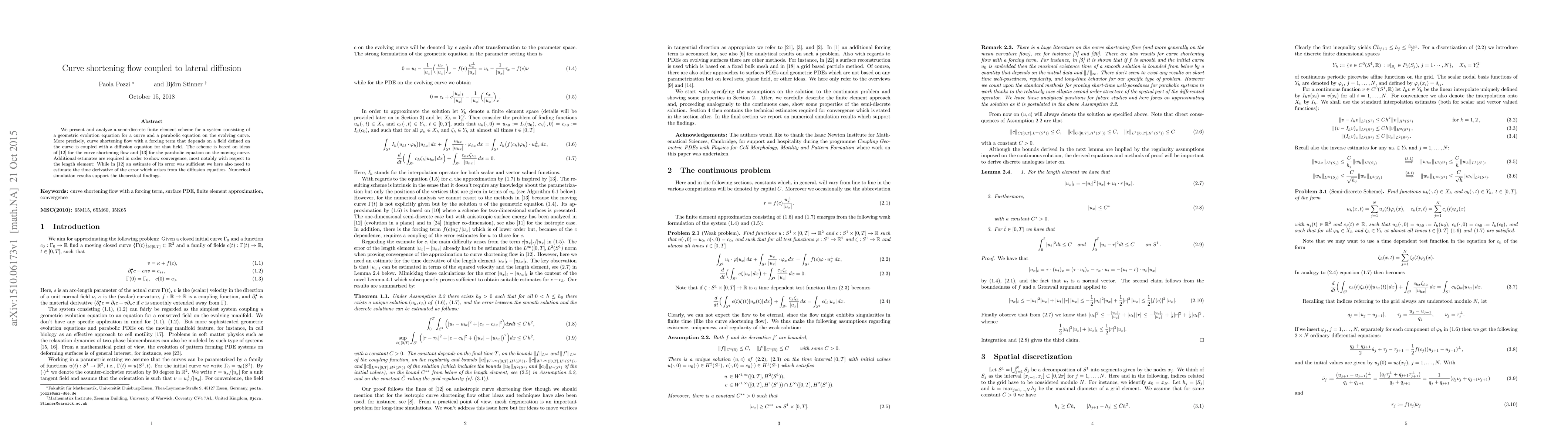 This paper develops a semi-discrete finite element scheme for a coupled system of curve shortening flow and lateral diffusion on the evolving curve. It requires additional estimates for convergence, particularly for the time derivative error from the diffusion equation, and numerical simulations validate the theoretical results.