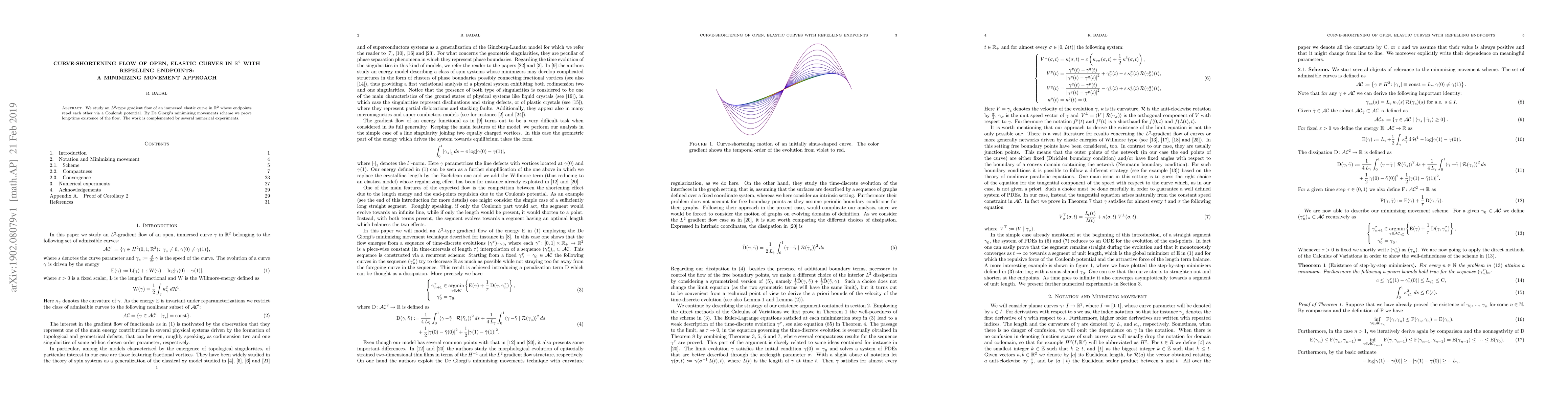 This research paper studies the long-term behavior of an elastic curve in 2D space with repelling endpoints, proving existence via De Giorgi's minimizing movements scheme.