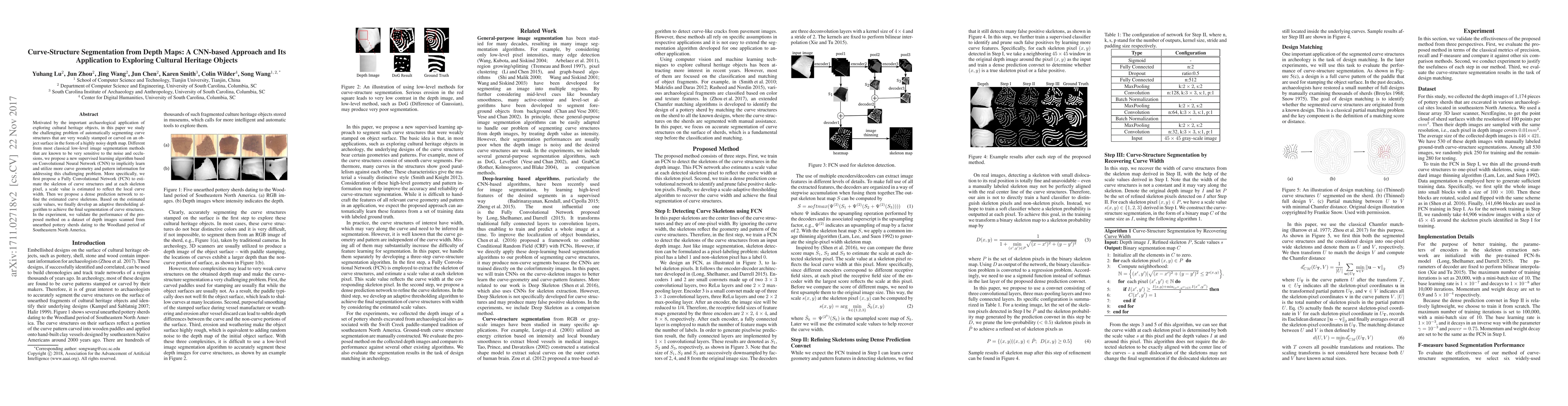 Researchers developed a CNN-based method to automatically segment curve structures from noisy depth maps, with applications in exploring cultural heritage objects. The approach achieved accurate results on a dataset of pottery sherds.