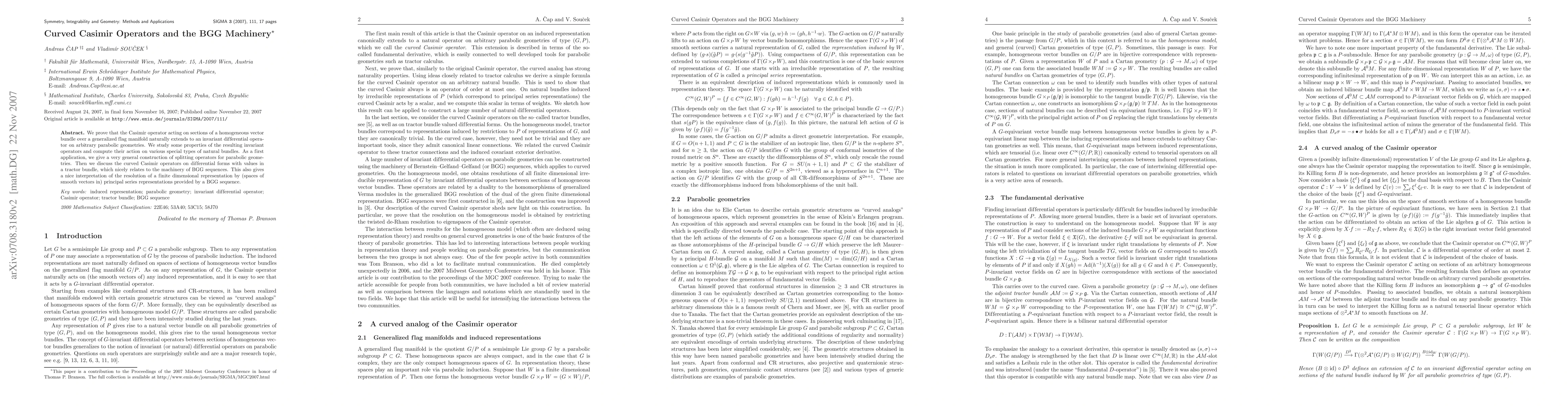 This paper proves the extension of the Casimir operator to an invariant differential operator on parabolic geometries and explores its properties and actions on specific bundles. It also applies this framework to construct splitting operators and discusses the curved Casimir operators in relation to BGG sequences, offering insights into representation theory.