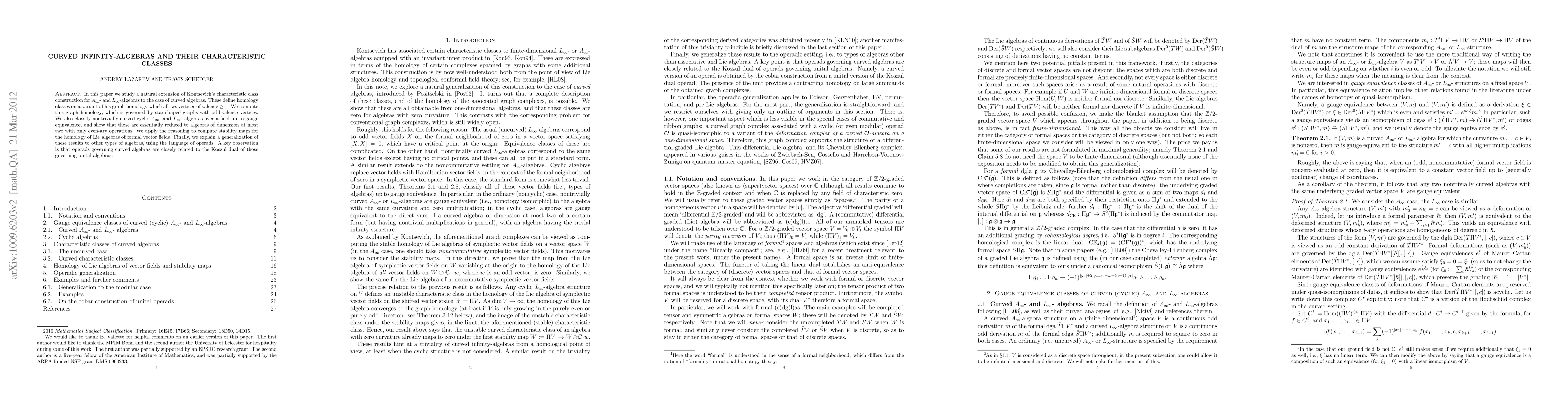 The paper introduces a method for extending characteristic class constructions to curved infinity-algebras, computing their graph homology, and classifying nontrivially curved cyclic A∞ and L∞ algebras.