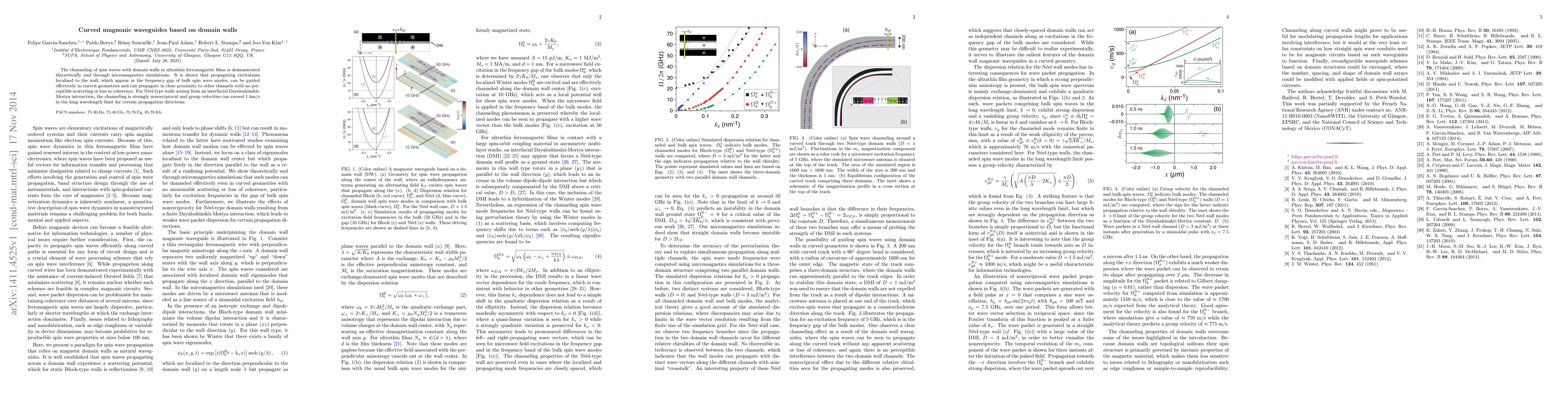 This paper demonstrates the effective guiding of spin waves via domain walls in ultrathin ferromagnetic films, showing minimal scattering and high coherence in curved geometries. The study highlights strong nonreciprocal channeling and high group velocities exceeding 1 km/s for N\'eel-type walls driven by Dzyaloshinskii-Moriya interaction.