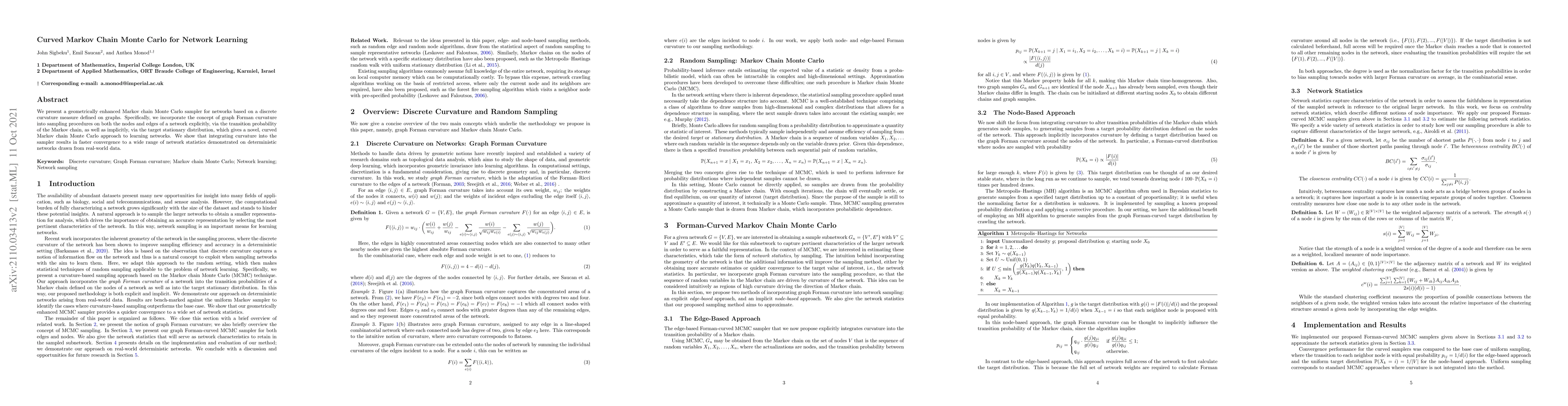 This paper introduces a new Markov chain Monte Carlo method that incorporates graph Forman curvature to enhance network learning. The approach leads to faster convergence in estimating network statistics, demonstrated through real-world data.