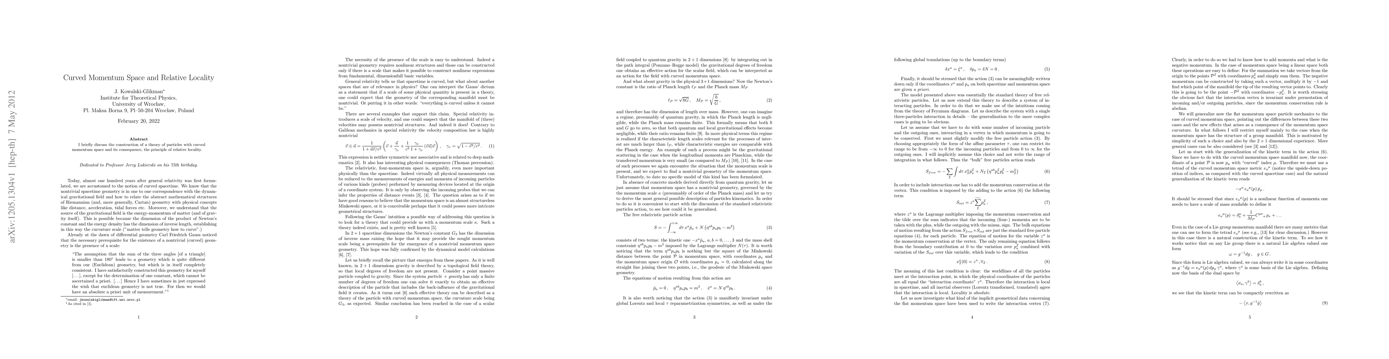 Summary: This paper constructs a theory where particles exhibit curved momentum space, leading to the principle of relative locality, which suggests that physical laws appear differently depending on the observer's frame of reference.