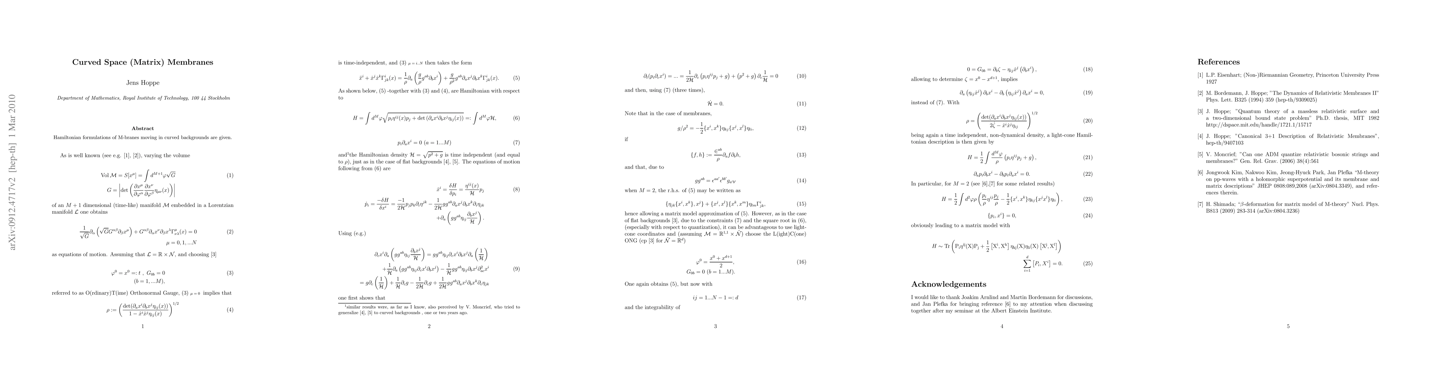 Hamiltonian formulations of M-branes moving in curved backgrounds are given.