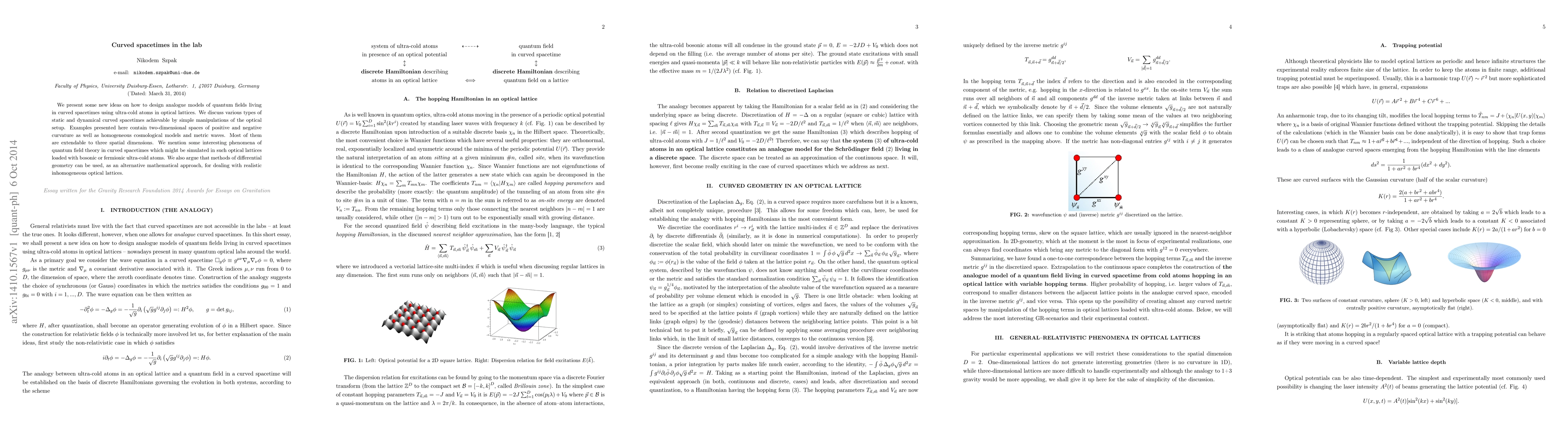 We present some new ideas on how to design analogue models of quantum fields living in curved spacetimes using ultra-cold atoms in optical lattices. We discuss various types of static and dynamical curved spacetimes achievable by simple manipulations of the optical setup. Examples presented here contain two-dimensional spaces of positive and negative curvature as well as homogeneous cosmological models and metric waves. Most of them are extendable to three spatial dimensions. We mention some interesting phenomena of quantum field theory in curved spacetimes which might be simulated in such optical lattices loaded with bosonic or fermionic ultra-cold atoms. We also argue that methods of differential geometry can be used, as an alternative mathematical approach, for dealing with realistic inhomogeneous optical lattices.