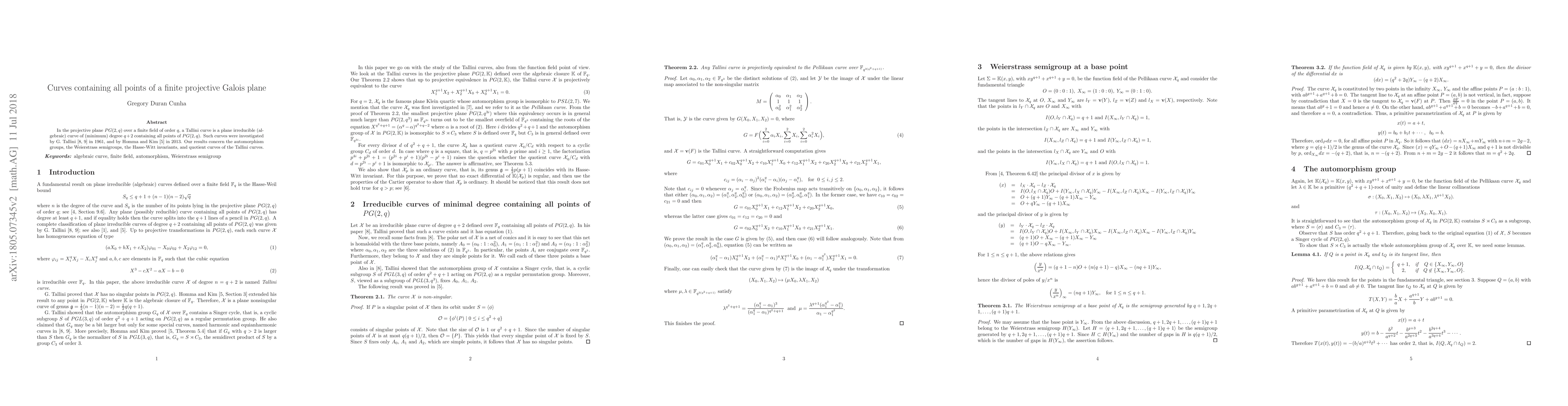This paper investigates Tallini curves in projective planes PG(2,q), focusing on their automorphism groups, Weierstrass semigroups, Hasse-Witt invariants, and quotient curves, expanding on previous work by G. Tallini and Homma and Kim.