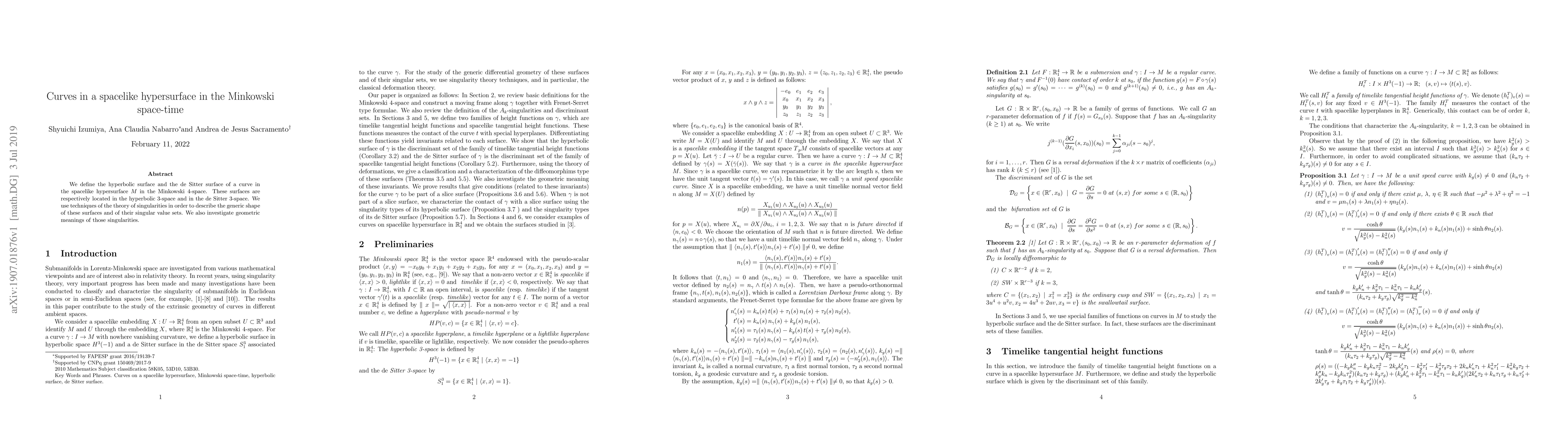 Submanifolds in Lorentz-Minkowski space are investigated from various mathematical viewpoints and are of interest also in relativity theory. We define the hyperbolic surface and the de Sitter surface of a curve in the spacelike hypersurface M in the Minkowski 4-space. These surfaces are respectively located in the hyperbolic 3-space and in the de Sitter 3-space. We use techniques of the theory of singularities in order to describe the generic shape of these surfaces and of their singular value sets. We also investigate geometric meanings of those singularities. The results in this paper contribute to the study of the extrinsic geometry of curves in different ambient spaces.