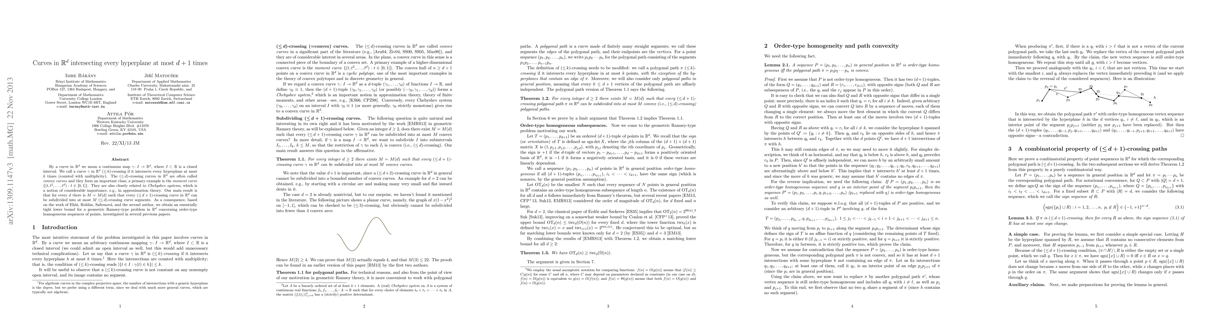 Researchers prove that every at most d+1 crossing curve in R^d can be divided into at most M convex curves, providing a key insight for geometric problems.