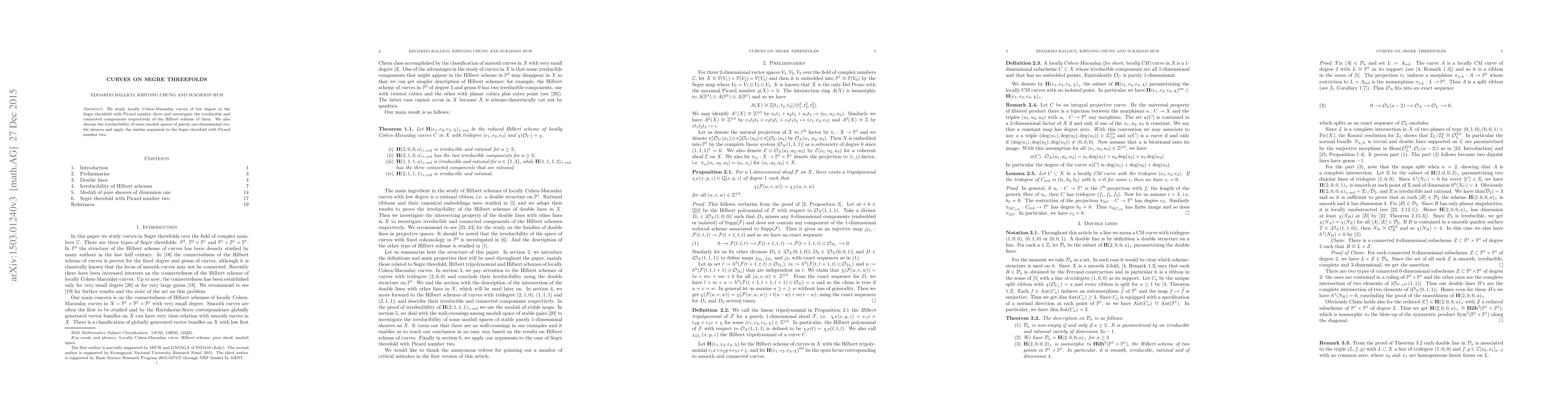 This paper investigates locally Cohen-Macaulay curves in Segre threefolds with Picard number three, analyzing their components in the Hilbert scheme and examining the irreducibility of moduli spaces of stable sheaves, extending similar arguments to Segre threefolds with Picard number two.