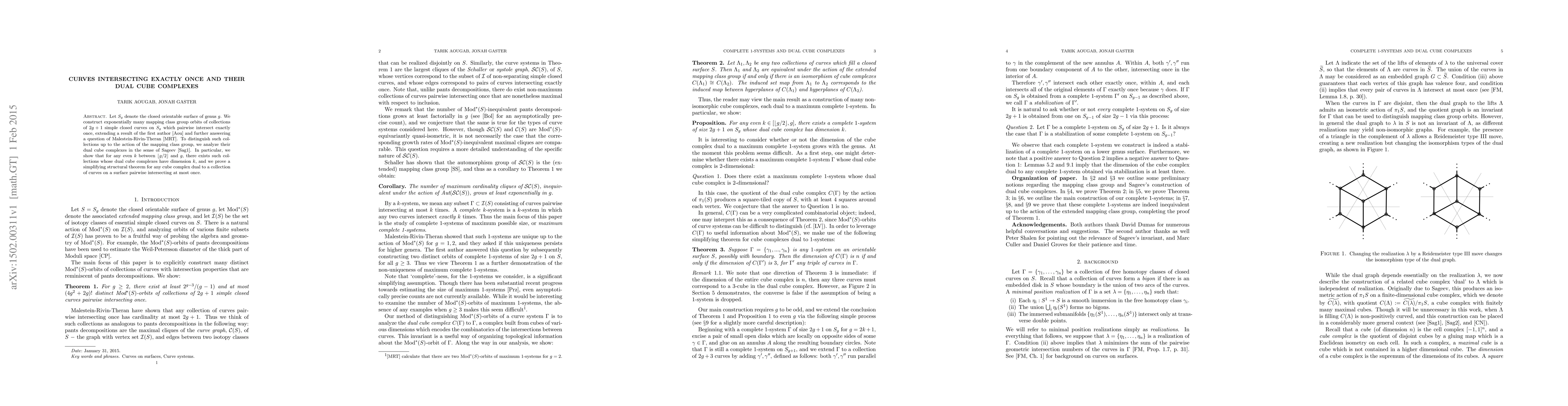 This paper constructs many mapping class group orbits of collections of simple closed curves on a surface that intersect exactly once, and explores their dual cube complexes. It proves the existence of such collections with dual cube complexes of specific dimensions and provides a structural theorem for these cube complexes.