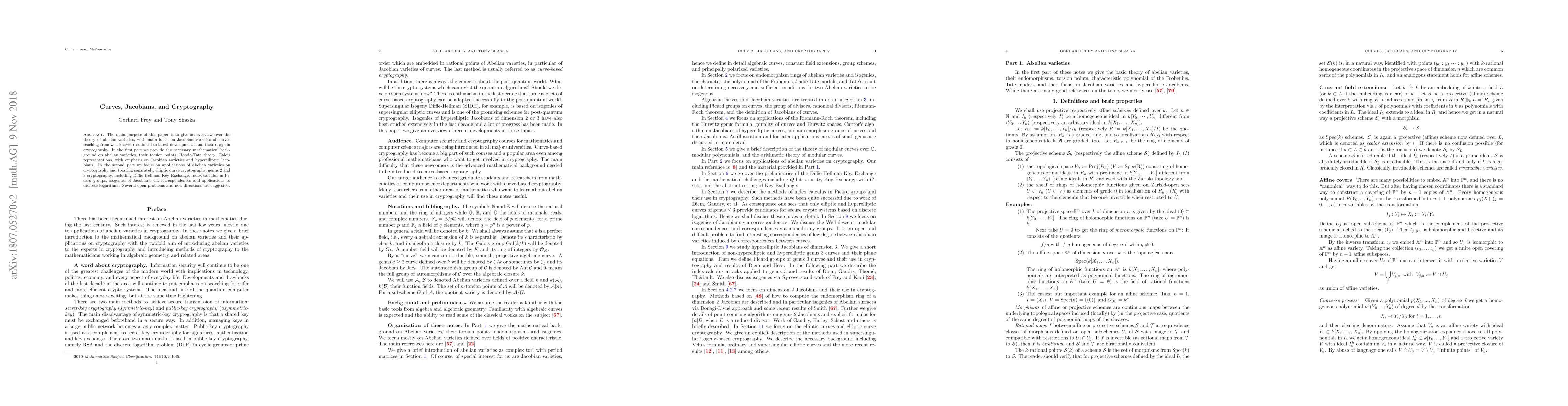 This paper provides an overview of the theory of abelian varieties, particularly Jacobian varieties of curves, and explores their applications in cryptography, including elliptic curve cryptography, genus 2 and 3 cryptography, and the use of isogenies in discrete logarithm problems. It also discusses open problems and new research directions.