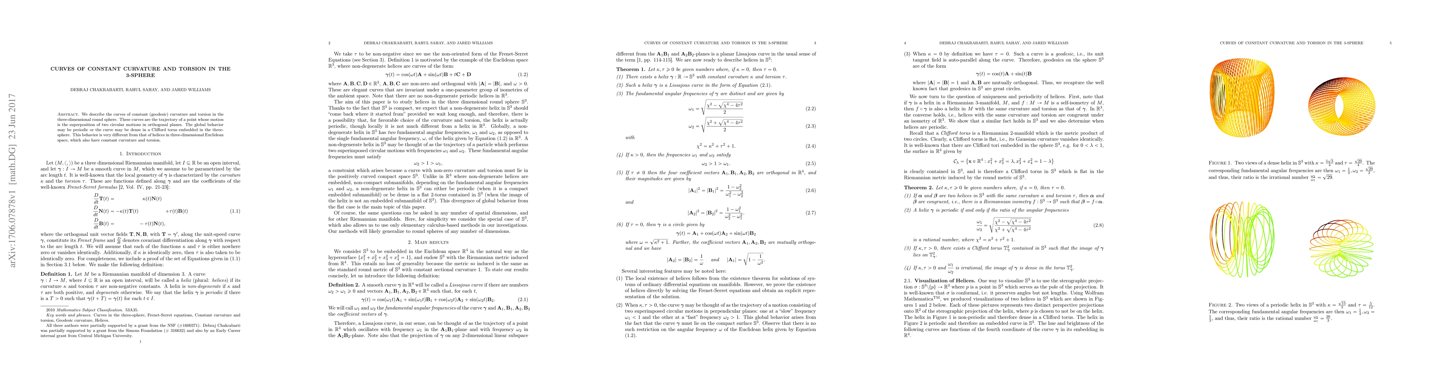 This paper investigates curves of constant curvature and torsion in the three-dimensional round sphere, revealing that they can exhibit periodic or dense behavior in Clifford tori, contrasting sharply with the behavior of helices in three-dimensional Euclidean space.