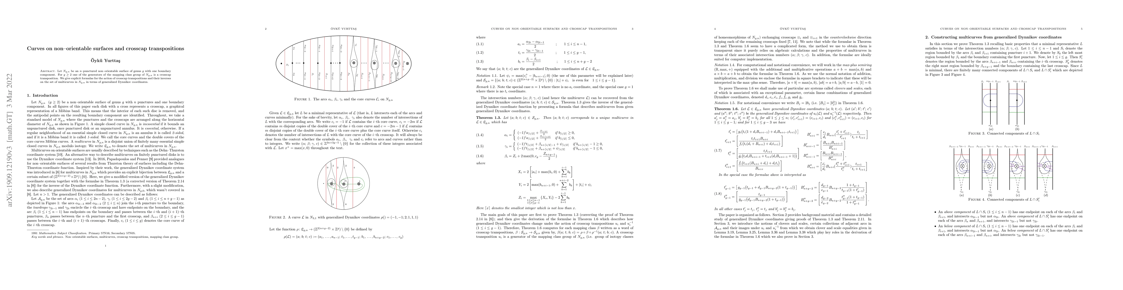 Let $N_{g,n}$ be an $n$--punctured non--orientable surface of genus $g$ with one boundary component. For $g\geq 2$ one of the generators of the mapping class group of $N_{g,n}$ is a crosscap transposition. We give explicit formulae for the action of crosscap transpositions and their inverses on the set of multicurves in $N_{g,n}$ in terms of generalized Dynnikov coordinates.
