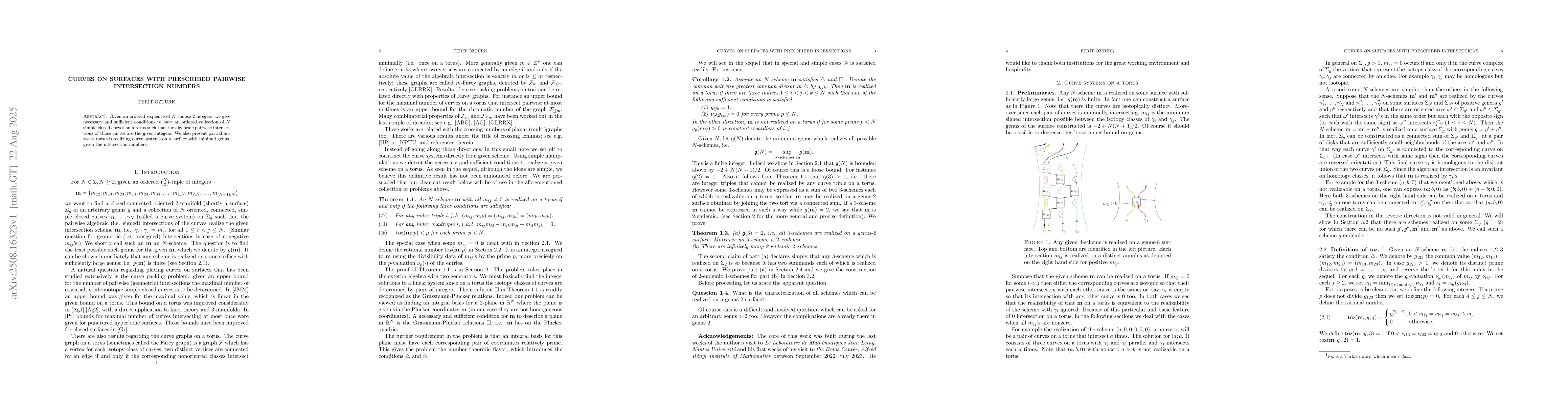 Given an ordered sequence of $N$-choose-2 integers, we give necessary and sufficient conditions to have an ordered collection of $N$ simple closed curves on a torus such that the algebraic pairwise intersections of those curves are the given integers. We also present partial answers towards realizing curve systems on a surface with minimal genus, given the intersection numbers.