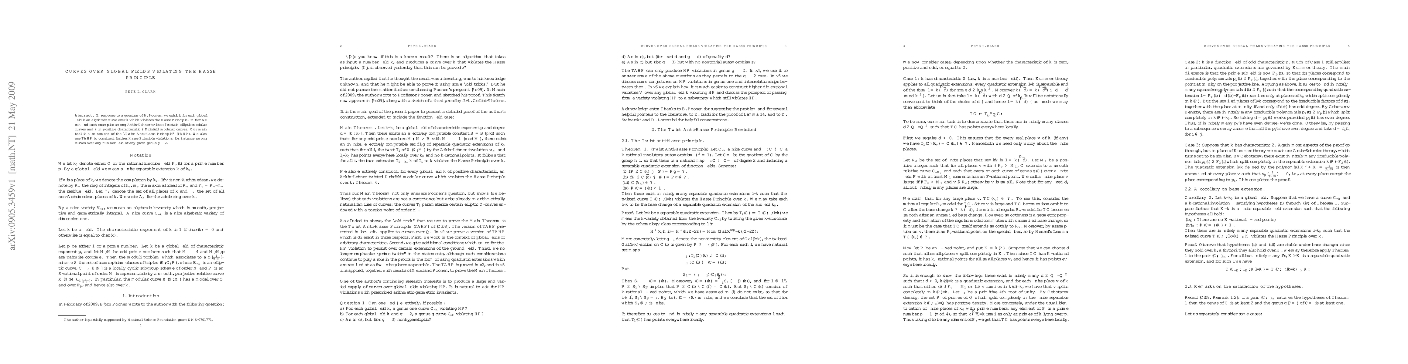 This paper provides examples of algebraic curves over global fields that violate the Hasse Principle, including Atkin-Lehner twists of elliptic modular curves and Drinfeld modular curves in positive characteristic. The authors use a refined "Twist Anti-Hasse Principle" (TAHP) to construct these violations and demonstrate the method's broader applicability to curves of genus at least 2 over any number field.