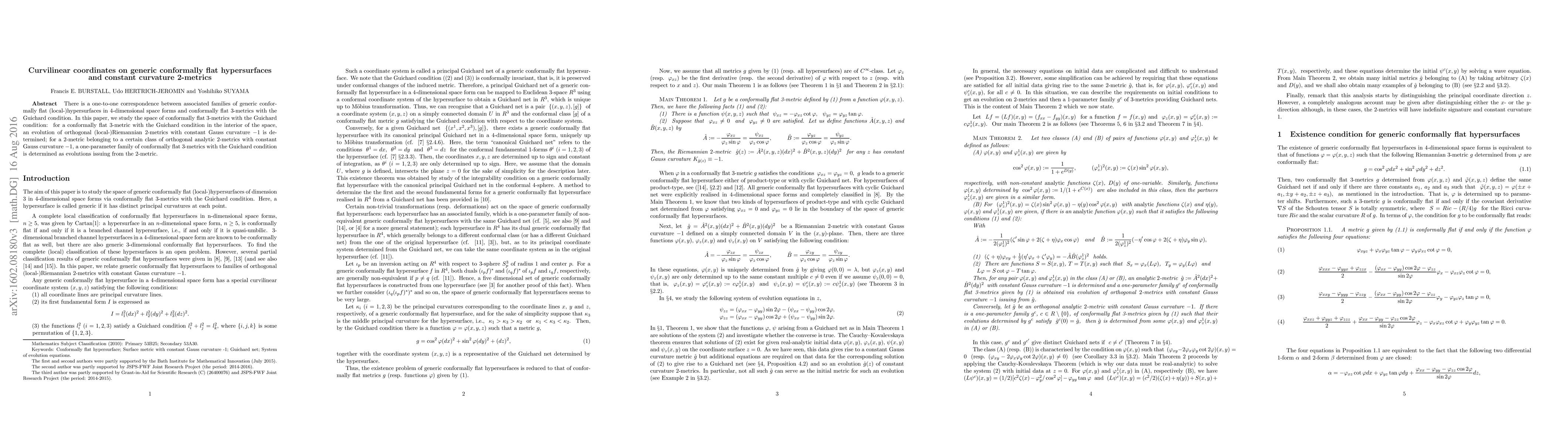 This paper investigates the relationship between conformally flat hypersurfaces in 4-dimensional space forms and conformally flat 3-metrics under the Guichard condition, determining evolutions of orthogonal Riemannian 2-metrics with constant Gauss curvature and vice versa.